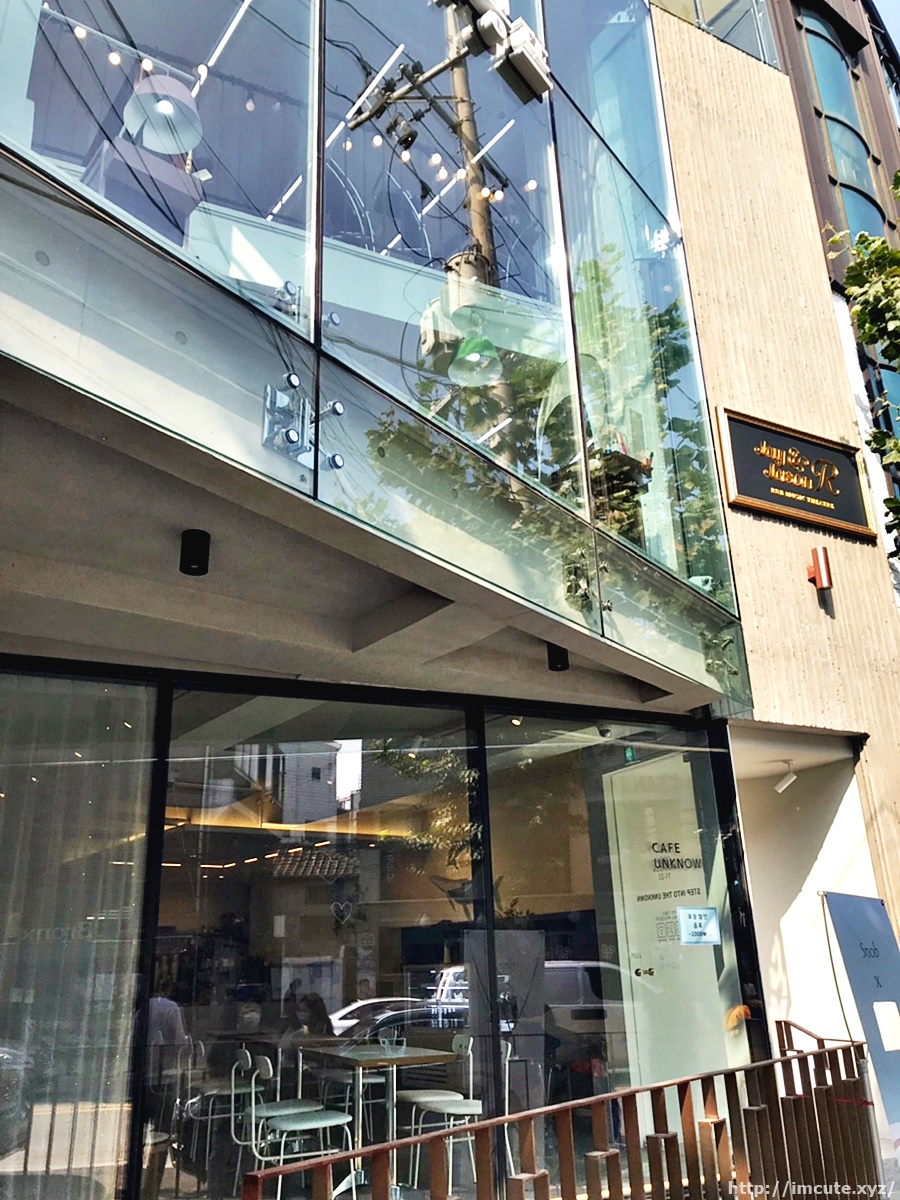 언노운은 꽁뜨라는 건물이랑 같이 위치해있어요. 통유리가 멋있고요, 홍대 구석 한적한 곳에 위치하였습니다.