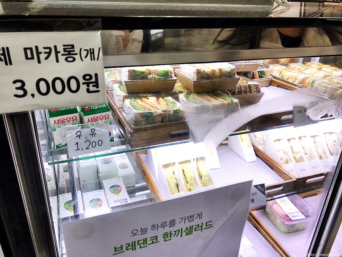 수제마카롱은 개당 3000원이며 냉장고에 들어있었는데요 유리문으로 되어있어서 내부에 무엇이 있는지 잘 보여서 좋았습니다.