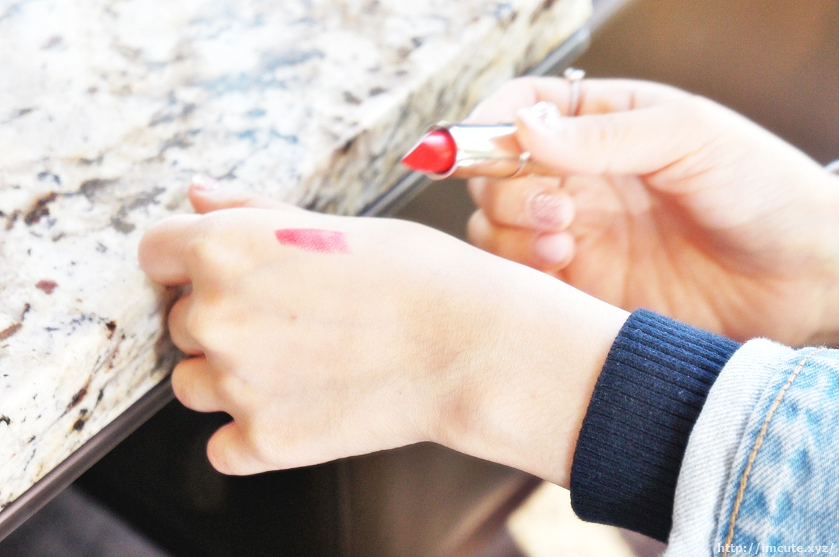 본 립스틱은 부드러운 발림감이 일품이지만 빨간색 정석레드 느낌으로 발색이 되는것도 인기를 끌고 있는 이유중의 하나입니다.