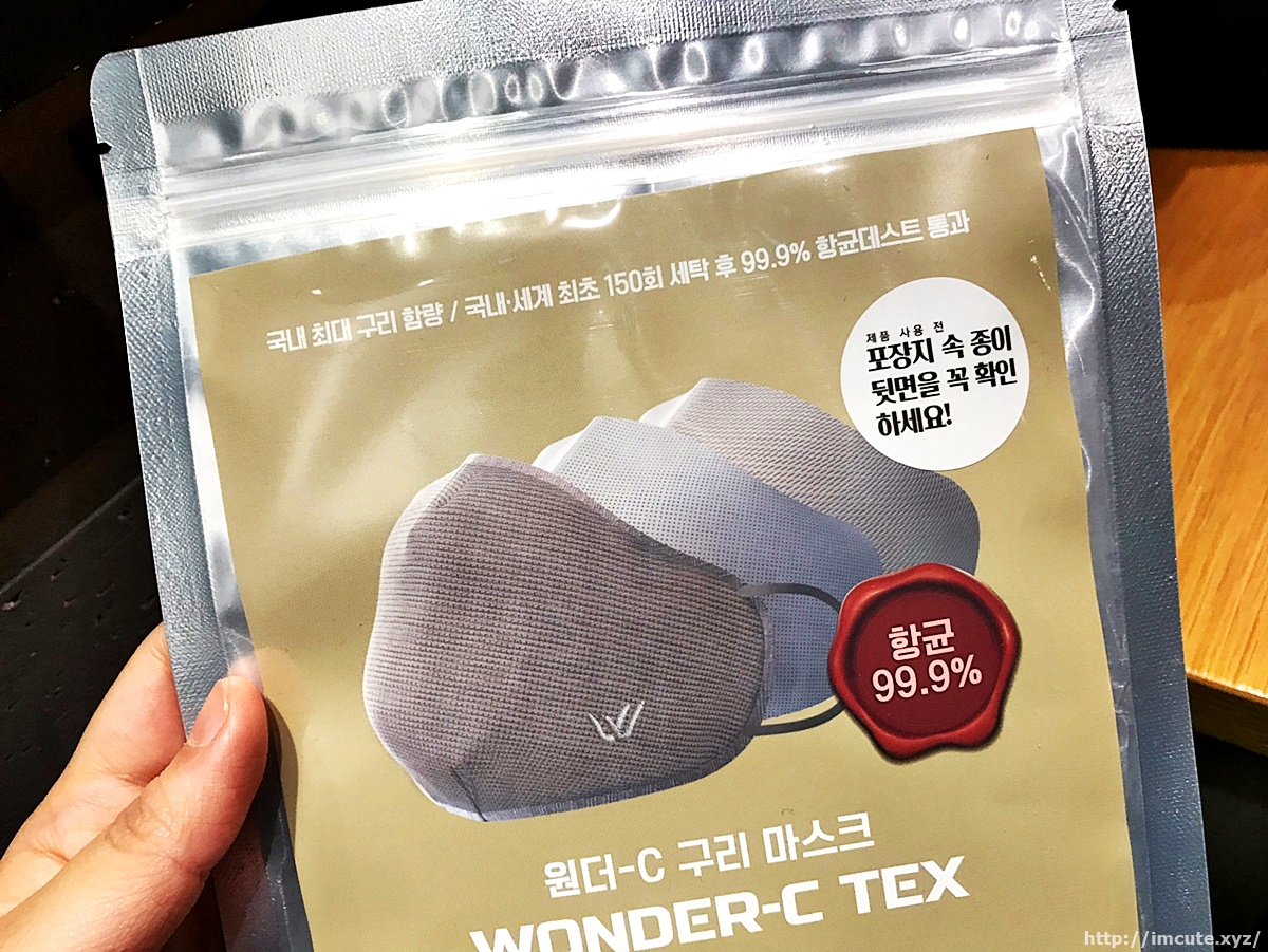 또한 원더-C 구리 마스크는 국내 최대 구리 함량에, 국내 세계 최초 150회 세탁후 99.9% 항균테스트까지 통과한 ㅏㅁ스크리고 합니다.