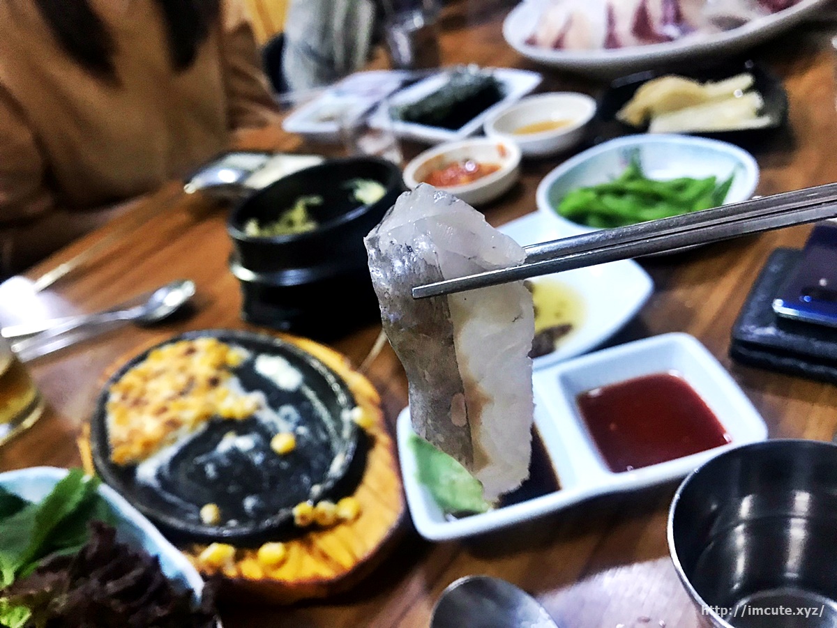 맥주 한잔하면서 먹으니까 넘나 맛이 좋더라고요. 안그래도 잠을 못자고 피곤했는데 스테미너가 확 보충됨을 느꼈답니다. 살코기도 크고 두툼한데다가, 일단 횟감을 정말 예쁘게 잘 썰어주십니다.