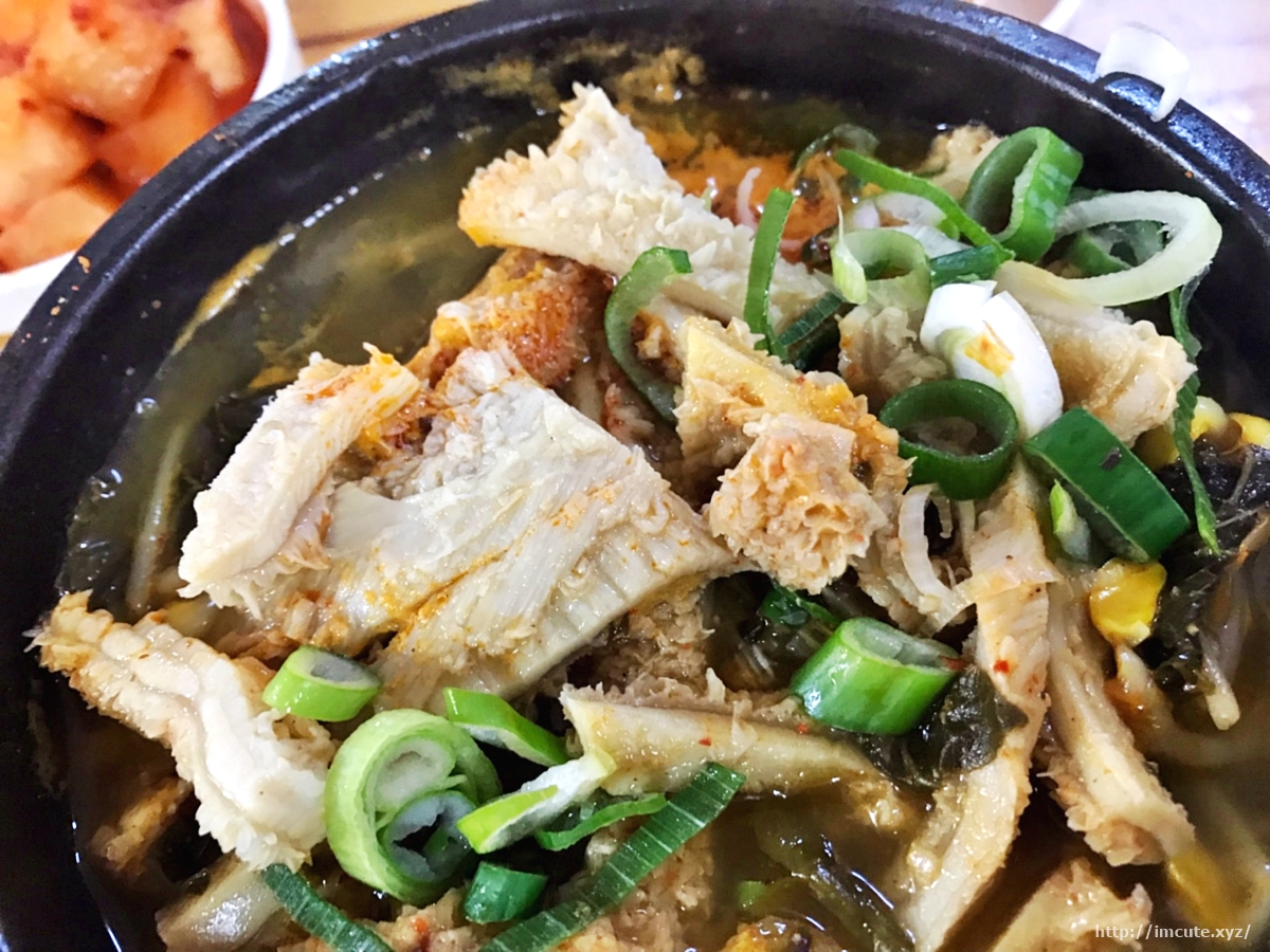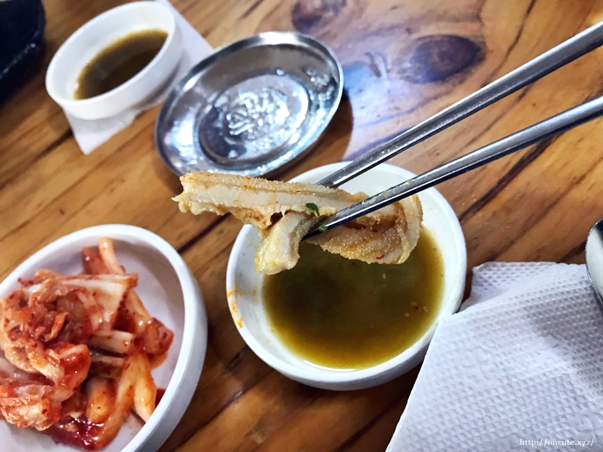일단 전 위에 고추기름을 뿌리고 후추를 쳤어요. 좀 매워지니까 먹을만 하더라고요. 양은 오뎅같이 생겼죠? 정말 쫀득하고, 맛이 일품이었습니다. 비린거 하나 없어요.