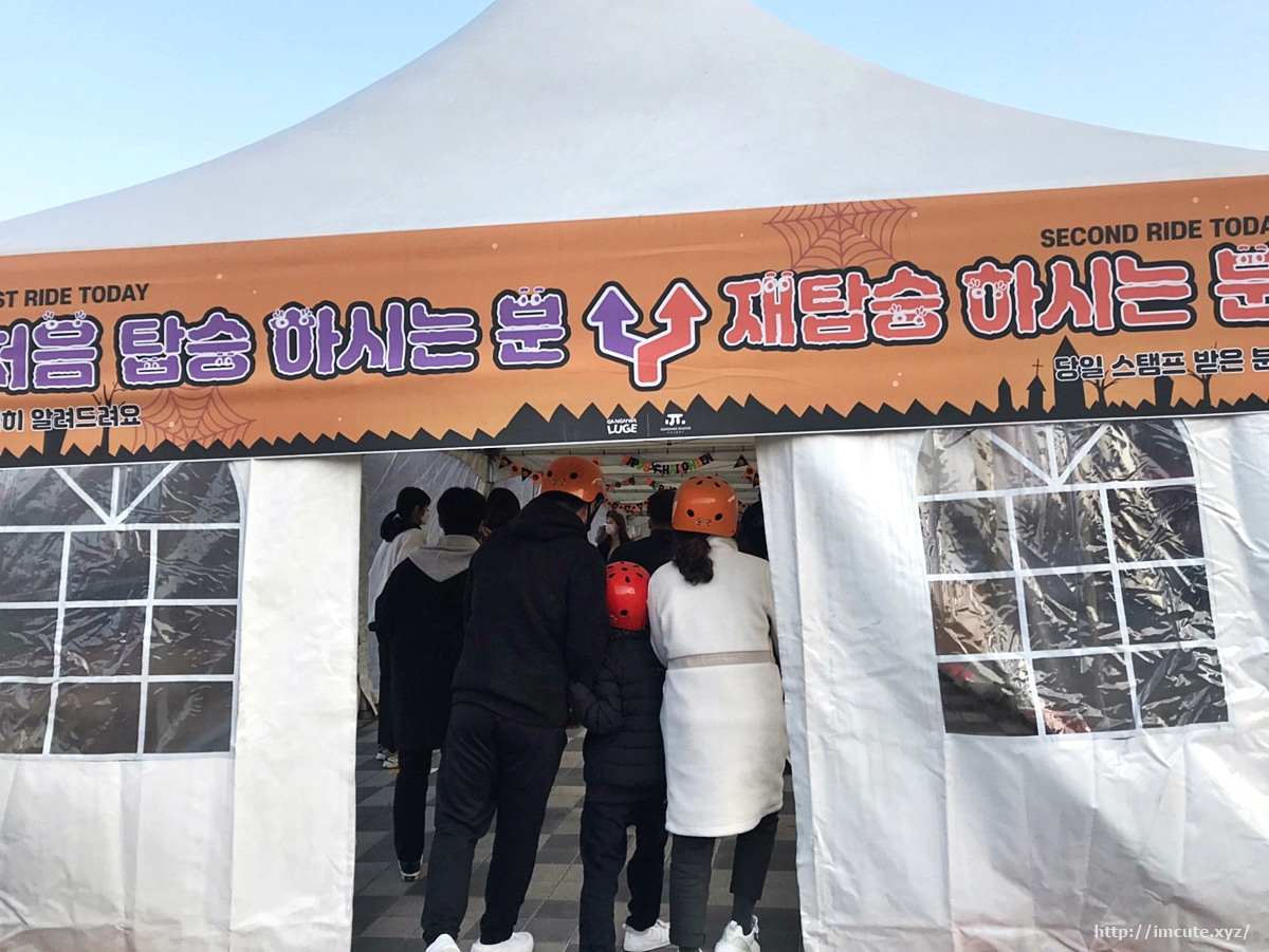 루지는 익스트림 스포츠라고 하는데요 "카트라이더"가 생각나는 녀석입니다. 위에서 아래로 슈슝 내려올때 얼마나 짜릿함이 느껴지는지 말도 못해요! 일하시는 분이 무거운 루지 차를 끌고 고생하시는 모습이 안타까워 보였는데요 계속 고생해 주시는 모습덕에 더욱더 감사한 마음으로 즐길수가 있었어요.
