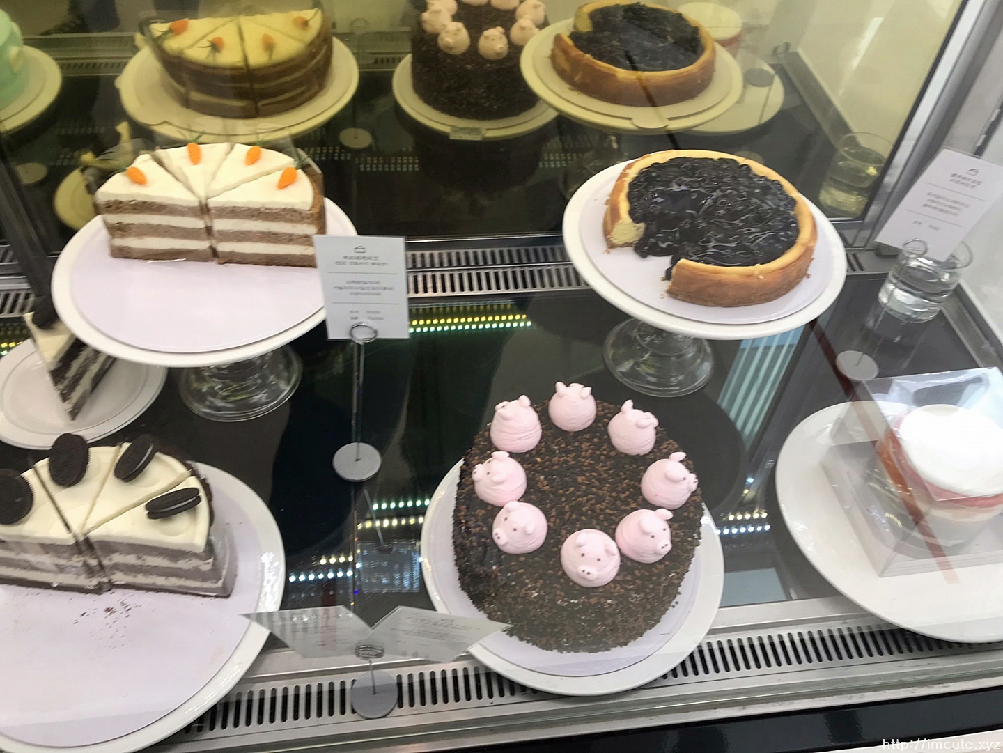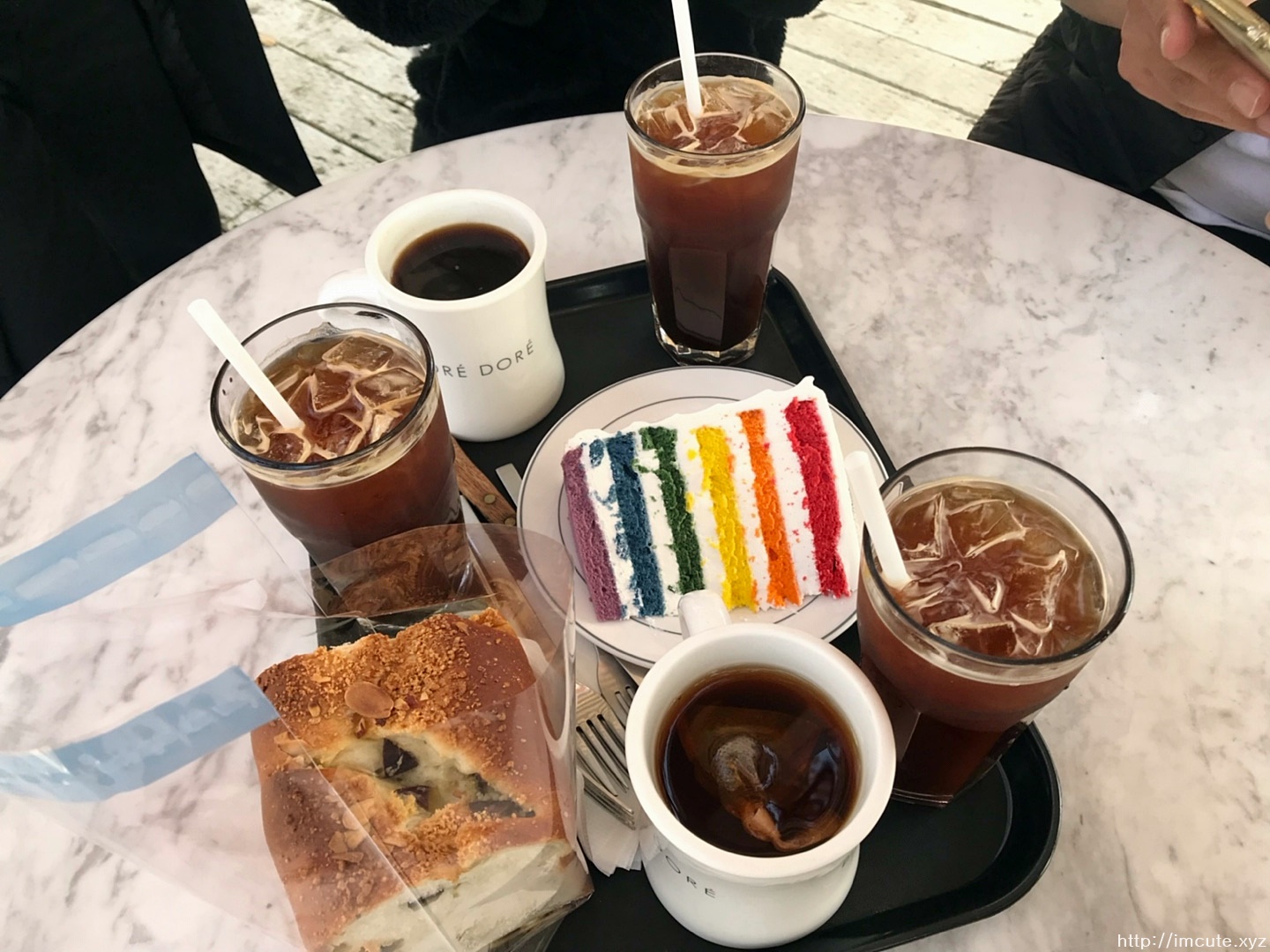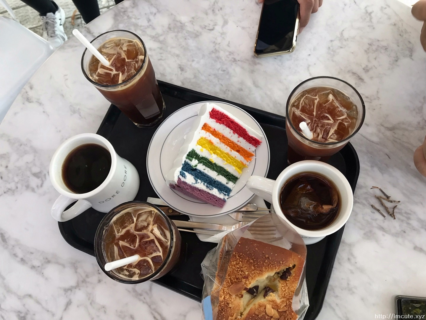 쇼케이스에는 여러가지 케익들로 한가득입니다. 저는 치즈케익도 맛있어 보였지만 여기엔 무지개케이크가 제일 유명하대요.