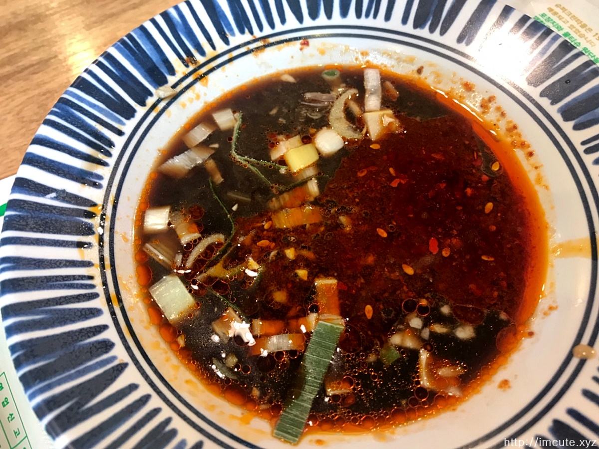 밑반찬이랑 소스입니다. 마라탕이랑 잘 어울리는 반찬! 여기에는 짜차이는 없고 김치가 있어서 아쉬웠어요. 중국간장이랑 마늘 고추기름 등 여러가지 다채로운 소스를 넣고 만든 나만의 양념장에 마라탕 건더기를 콕콕 찍어먹는것도 정말 맛이 좋았어요.