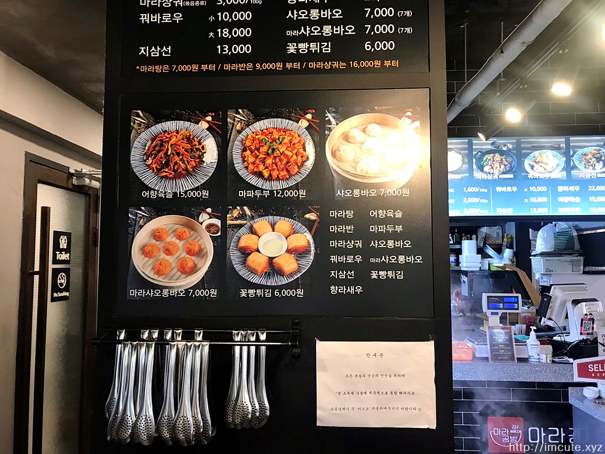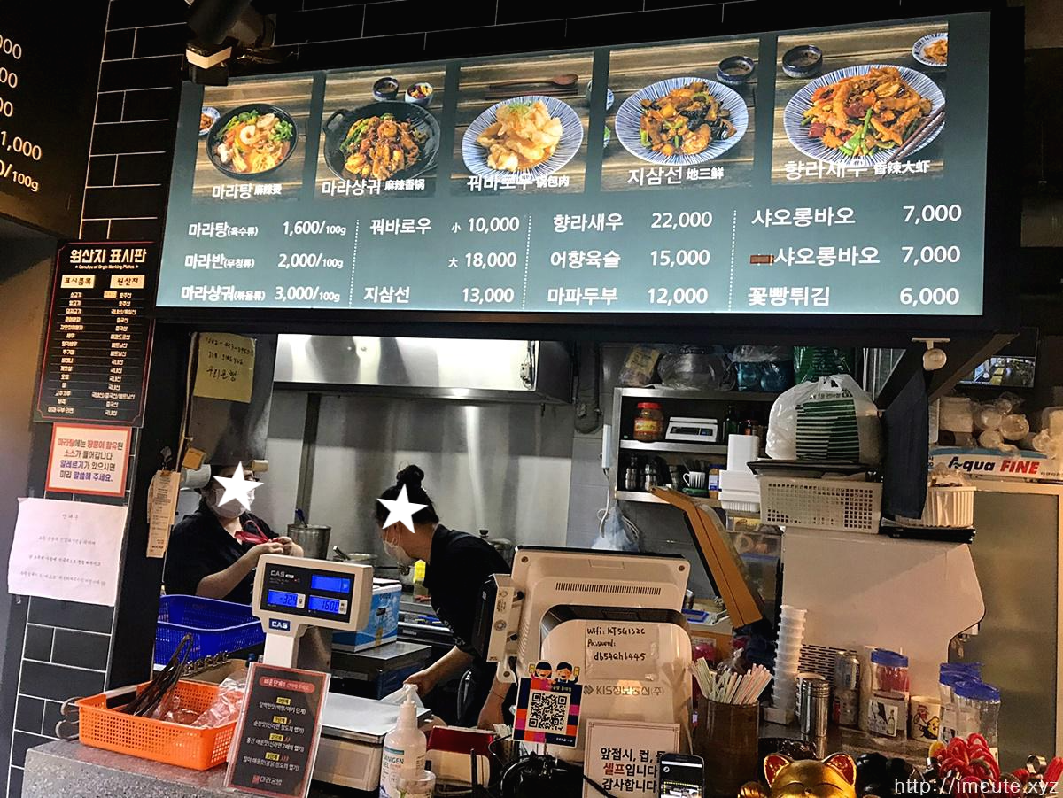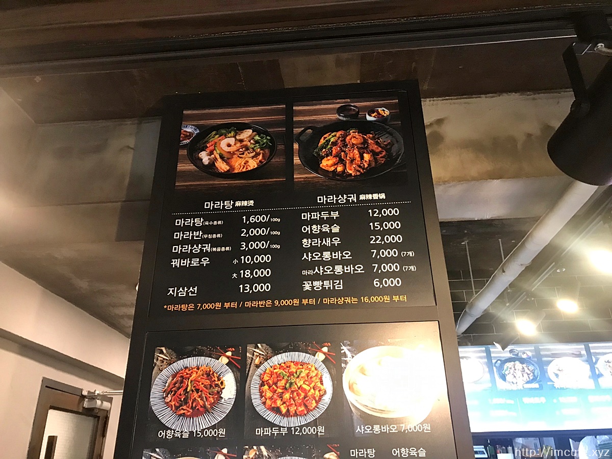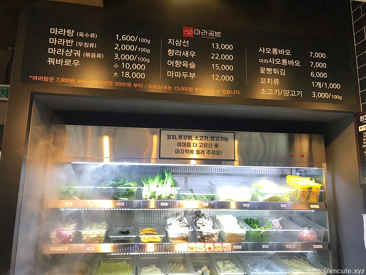 홍대 마라공방 메뉴 가격 표