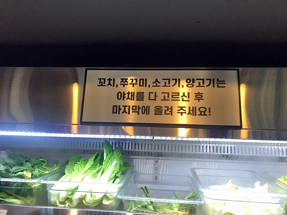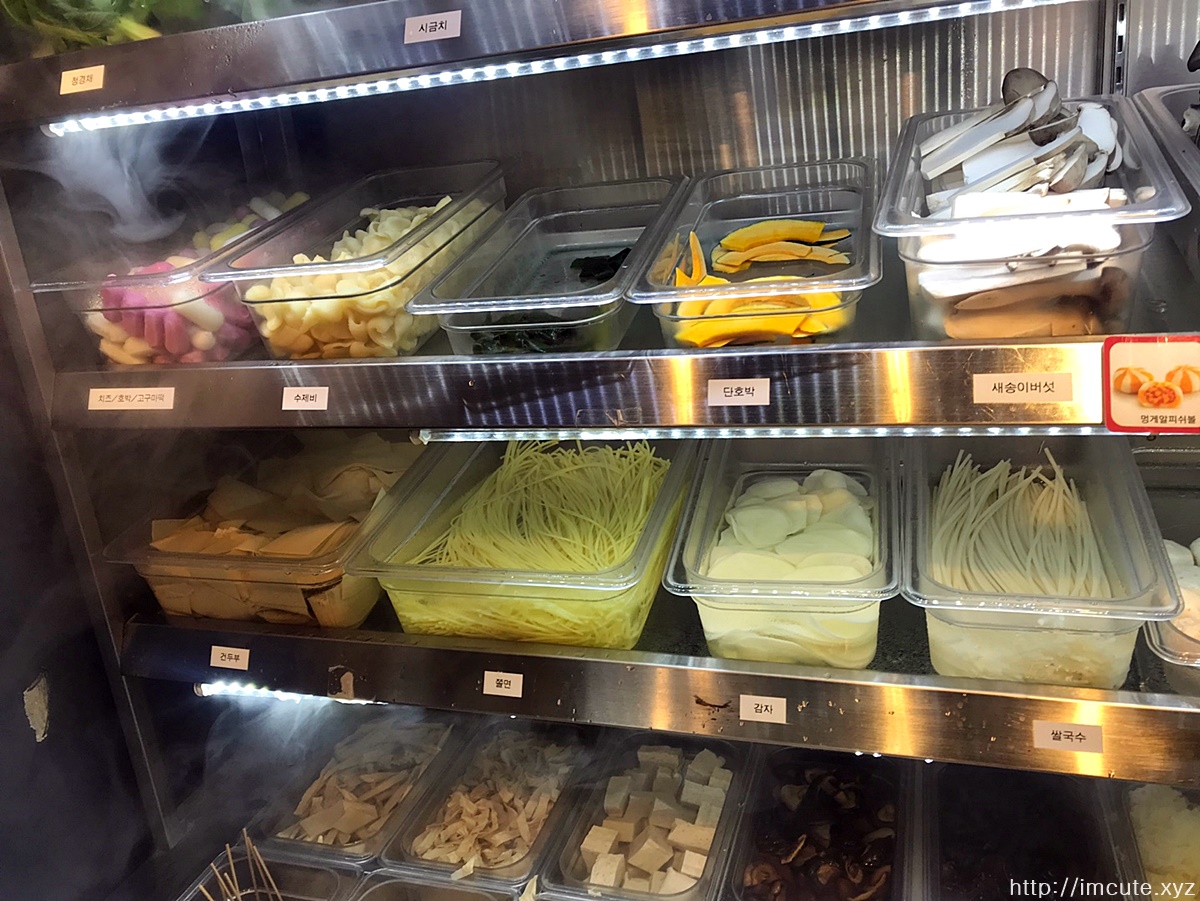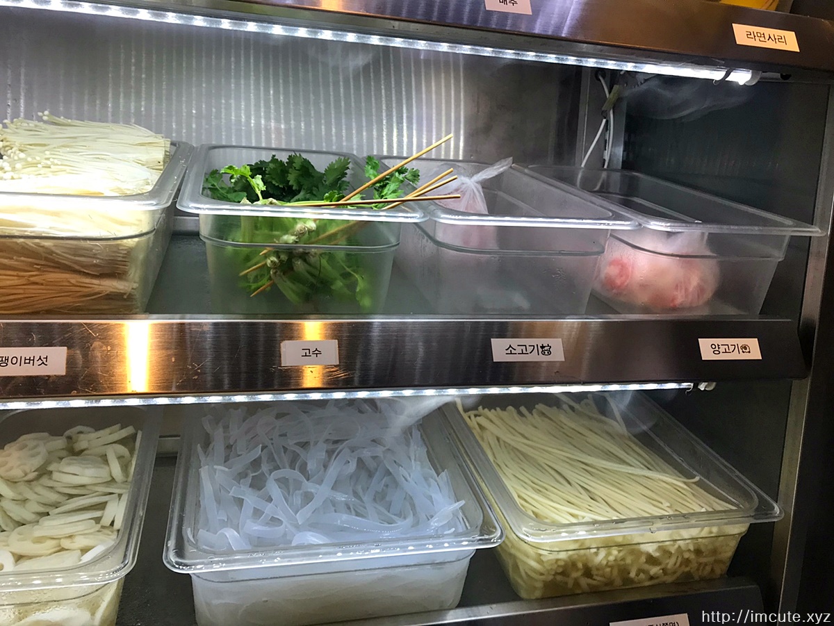 꼬치 및 쭈꾸미, 소고기, 양고기는 야채를 다 골라준 후 마지막에 올리면 된다고 하는데요 재료 퍼오기 참 쉽죠.