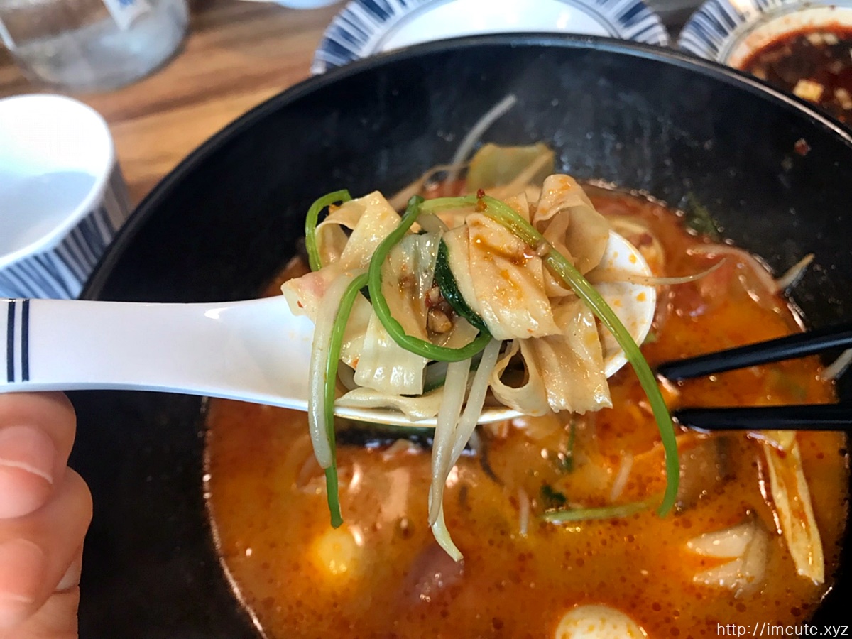 고수에 소고기 팽이버섯 양고기도 보여요. 중국식 쫄면도 넣어주면 맛있는데 한국것보다 되게 두껍고 그래요.