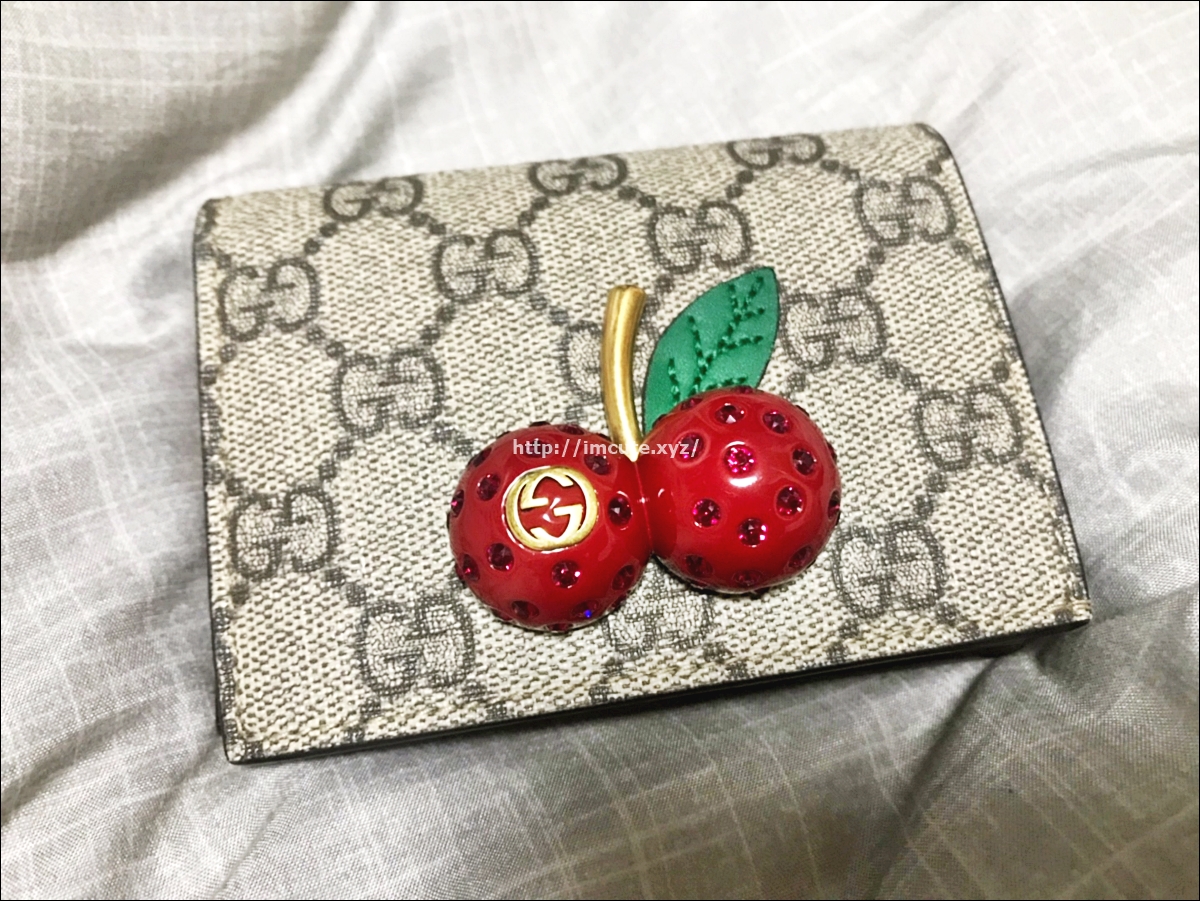 구매 한지는 1년정도가 된거 같지만 명품은 오래오래 쓸 수가 있죠! 구찌 체리지갑 리뷰입니다. 정식 명칭은 "체리 장식의 GG 수프림 카드 케이스"입니다. 구찌 시그니처 문양에 가운데 체리가 콕 박혀 있는 모델으로 아주 귀요미스럽습니다.