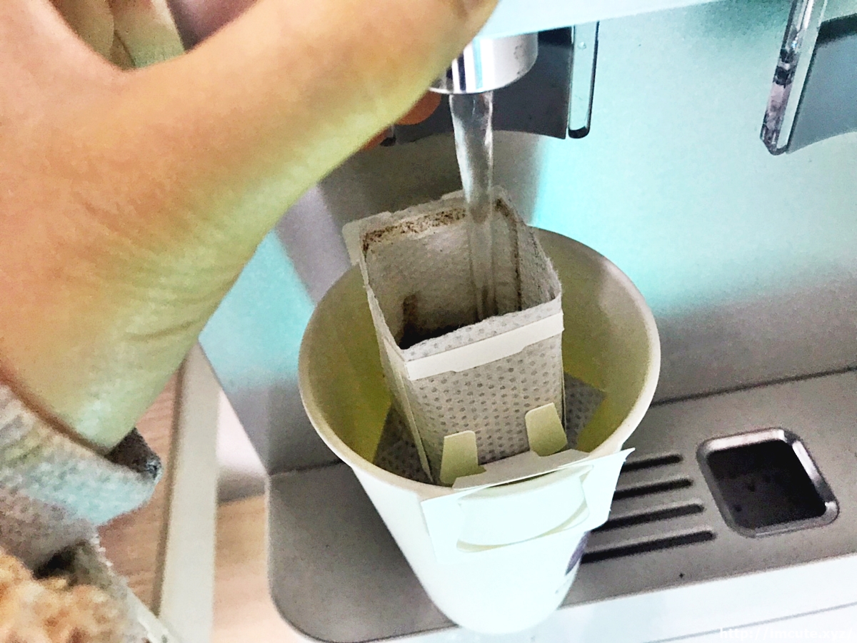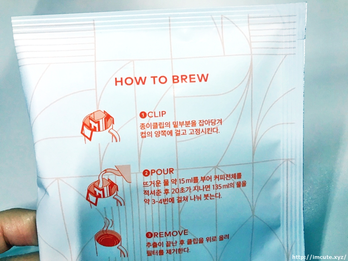 정수기 물만 부어주면 되다니 참 좋은 세상이 아닐 수가 없네요. 뜨거운 물은 조심해서 부어주어야 손이 데지 않는답니다. 인스턴트 드립백은 모양만 커피를 흉내낸것이 많아서 사실 맛은 기대 안했는데, 투썸플레이스의 그 원두맛을 이렇게 옮겨놓다니 믿을수가 없었습니다!