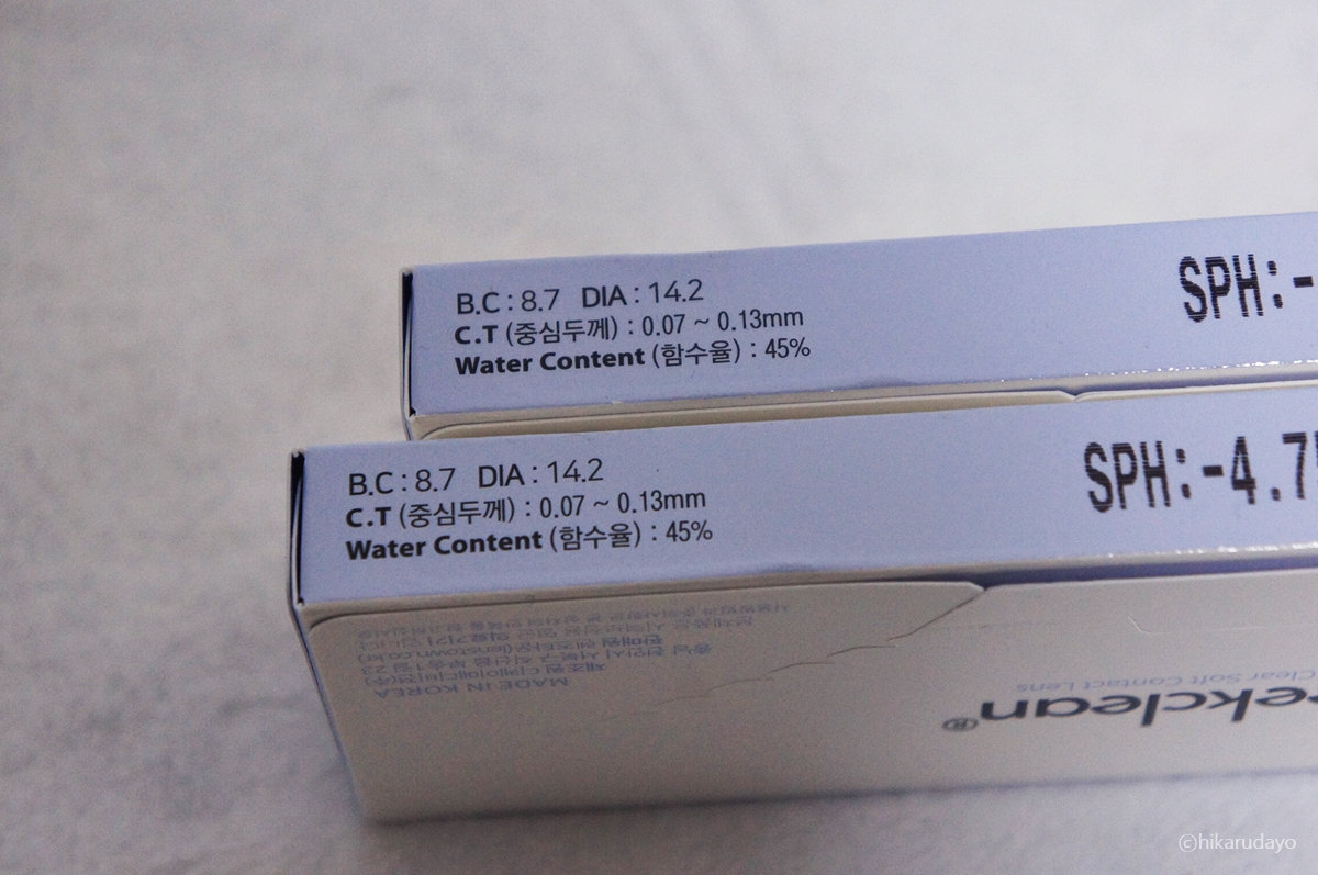 위클린 렌즈는 B.C 8.7, DIA 14.2, CT(중심두께)는 0.07에서 0.13mm인데 시력에 따라 살짝 상이한가보다. 함수율은 45%로 꽤나 괜찮은거 같다. water content를 중점으로 보고 사는데 나름 훌륭한 제품인듯! 시력은 좌우 기준 -4.75, -4이다. 짝눈이라 두팩을 이용한다.