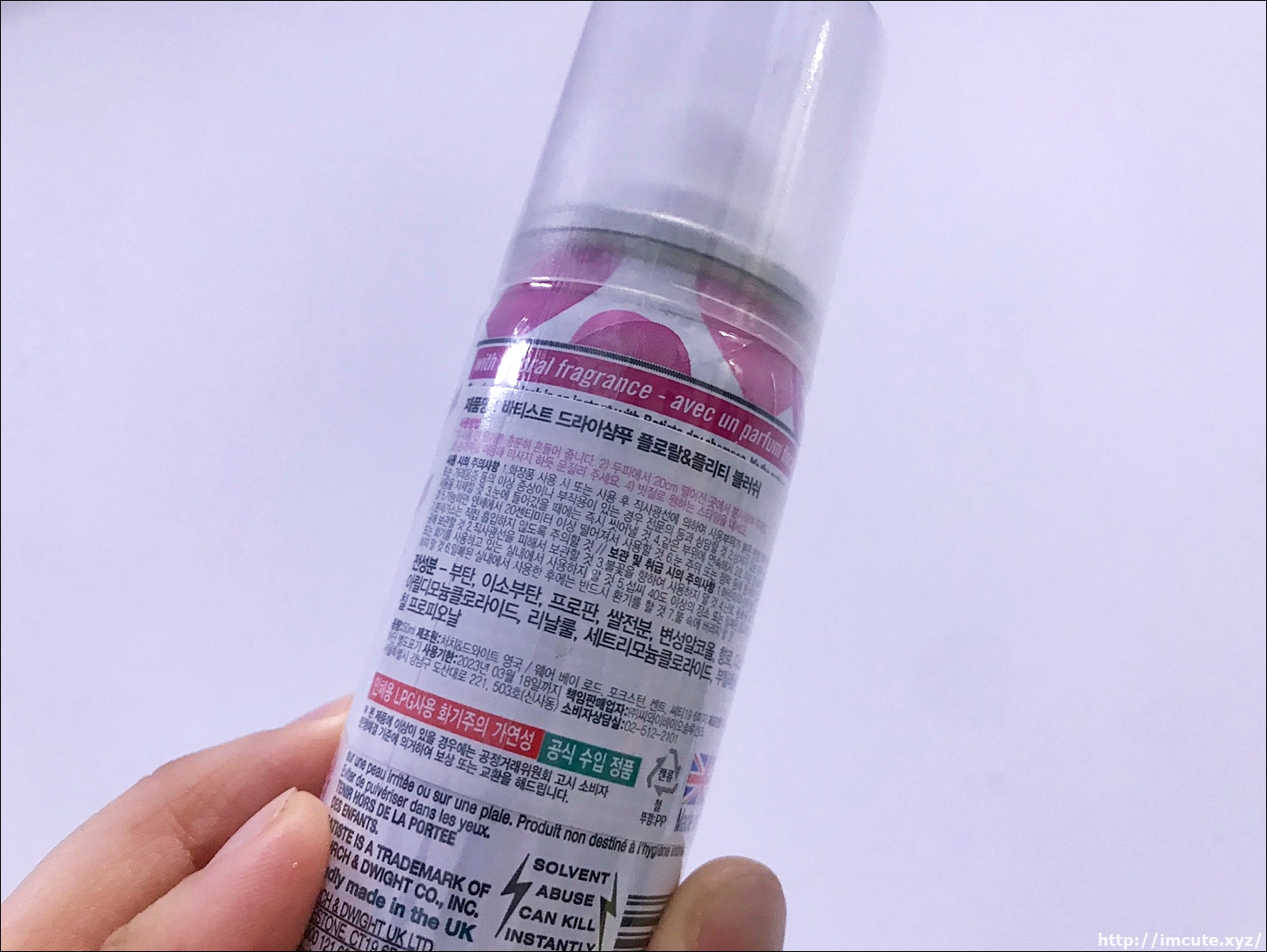 바티스트 드라이샴푸 플로랄&플리티 블러쉬로 써보았는데요 아무래도 저랑 핑크색이 잘 어울릴 것 같았나 봅니다~ 여러가지 종류가 있긴 있었는데 말이죠. 저는 조그만 사이즈였는데 쓰기 딱 편리하더라고요.