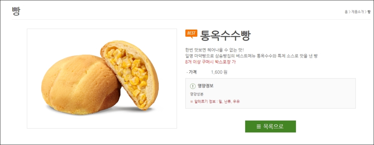 삼송빵집 홈페이지에서는 이뿐만 아니라 다른 여러가지 빵들도 소개하고 있었습니다. 옥수수빵 말고도 먹어볼 것들이 너무 많아서 선택이 마치 렉 걸린 듯, 버벅여지네요.