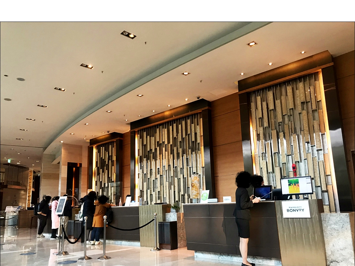 프론트이다. 손님들이 정~ 말 많았다. 저번에 웨스틴 조선호텔 갔던 거랑은 비교도 안 될 만큼 말이다. 사람들이 많아도 정말 너무 많던데 요즘 코로나때문에 호텔이 호황일거 같다. 코트야드 메리어트 호텔은 조식도 유명하니까 사람들이 더욱 많이 찾는 듯했다.