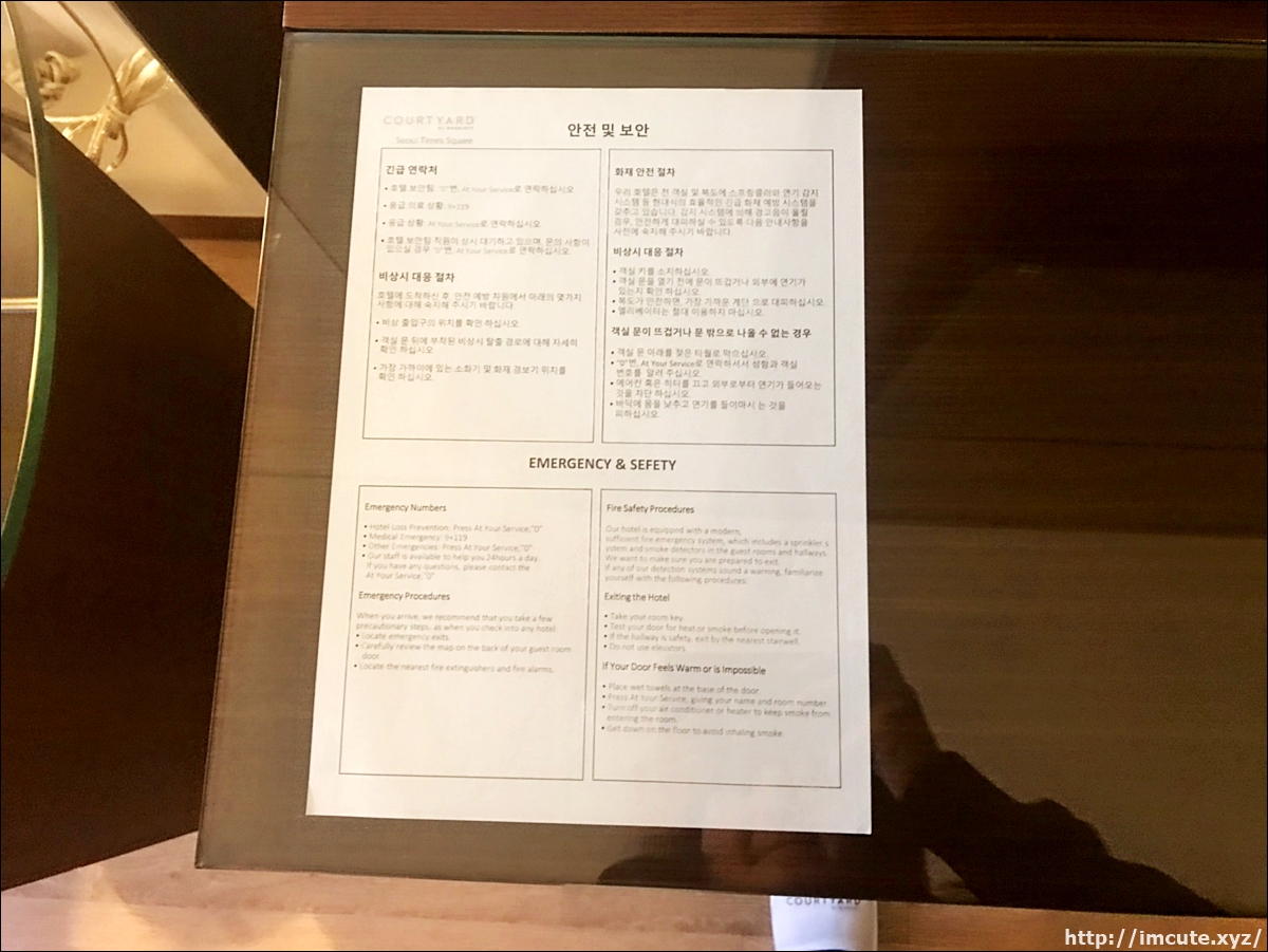 안전및 보안수칙이나 대처사항 등이 영어&한국어로 써있는 멋진 객실이었다.