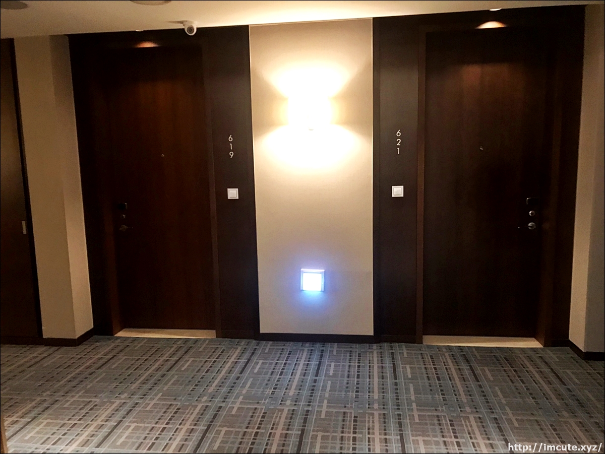 복도는 매우 조용하다. 이때부터 프라이빗함이 느껴지는 순간이다. 모던한 짙은 나무색의 문 그리고 호실이 써있다. 내가 묵는 호실도 6층에 위치하고 있었다. 하지만 체감상으로는 10층 이상의 느낌이 들었는데 아마 건물 자체적으로 천장이 높은거 같다.