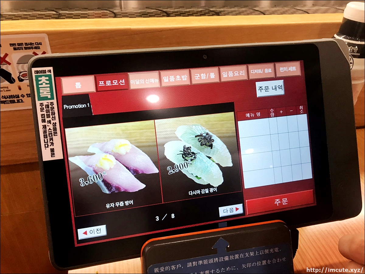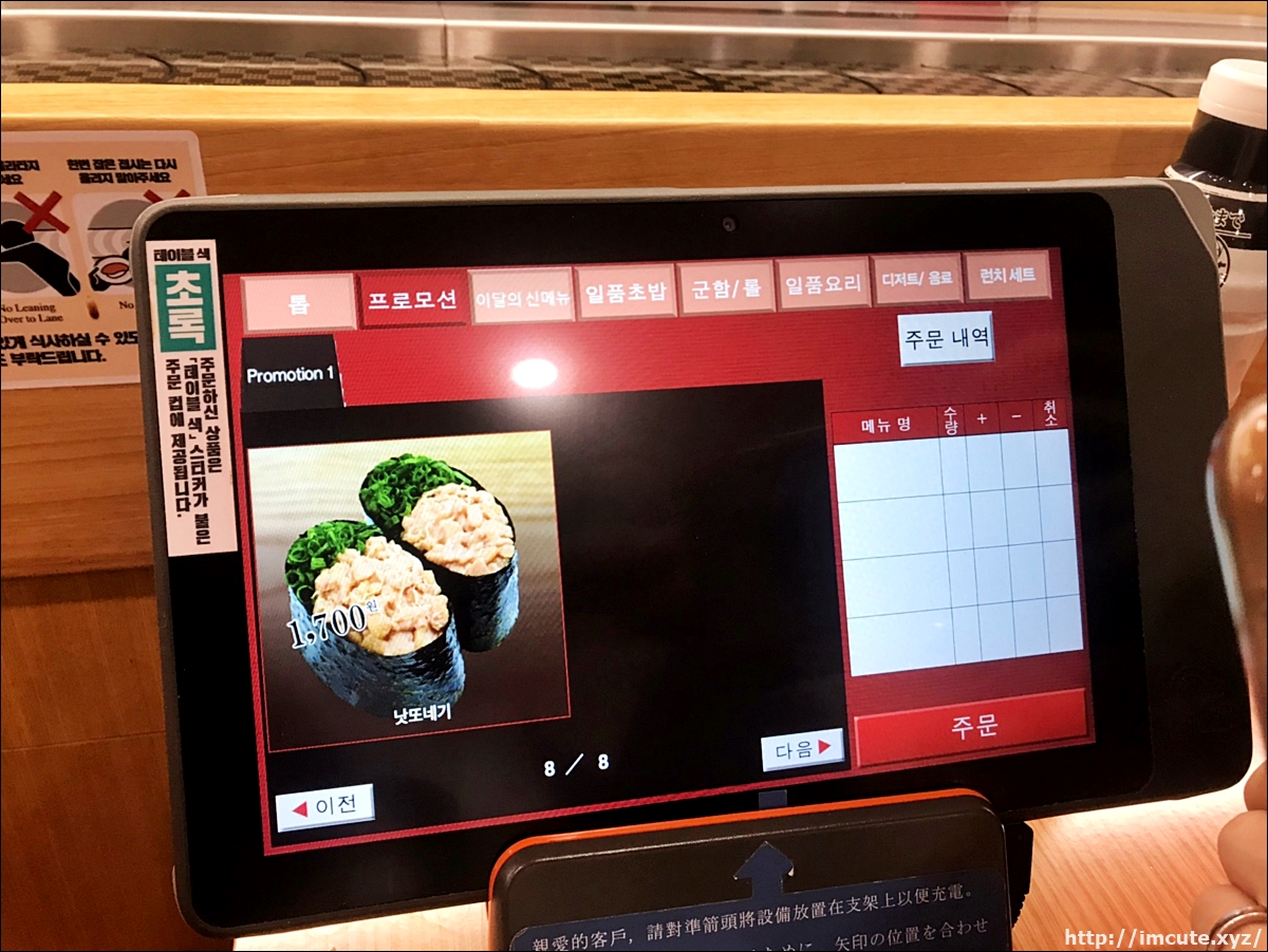 내부는 사람들이 많았는데요 회전초밥집이지만 아무거나 집어먹으면 안되는 시스템이라는게 이곳의 함정입니다! 자, 모두들 자신의 초밥을 제대로 집을 준비가 되어 있으신가요!