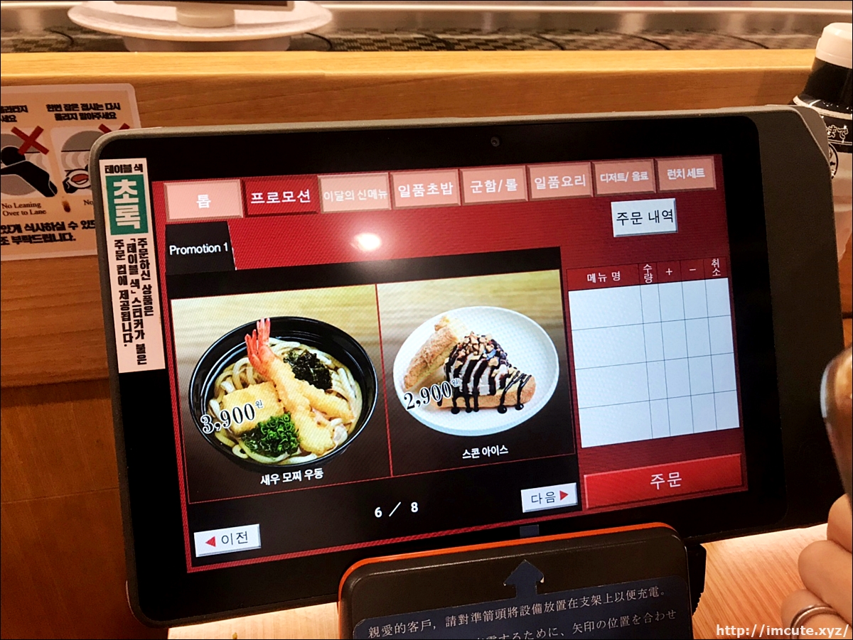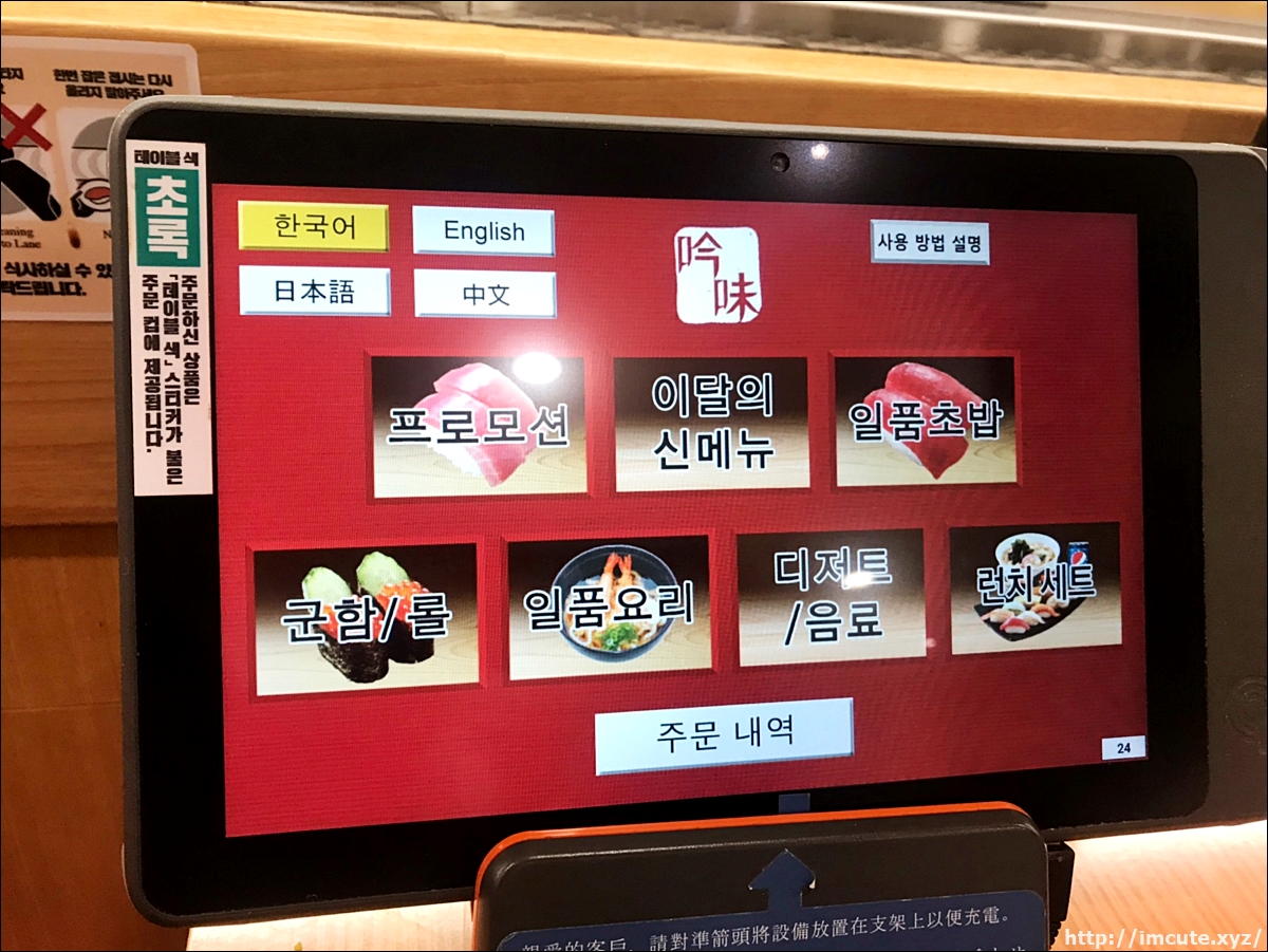 자리마다 기계가 있어서 편안하게 주문이 가능하지만 4개씩 단위로밖에 못시켜서 그게 안타까웠어요.