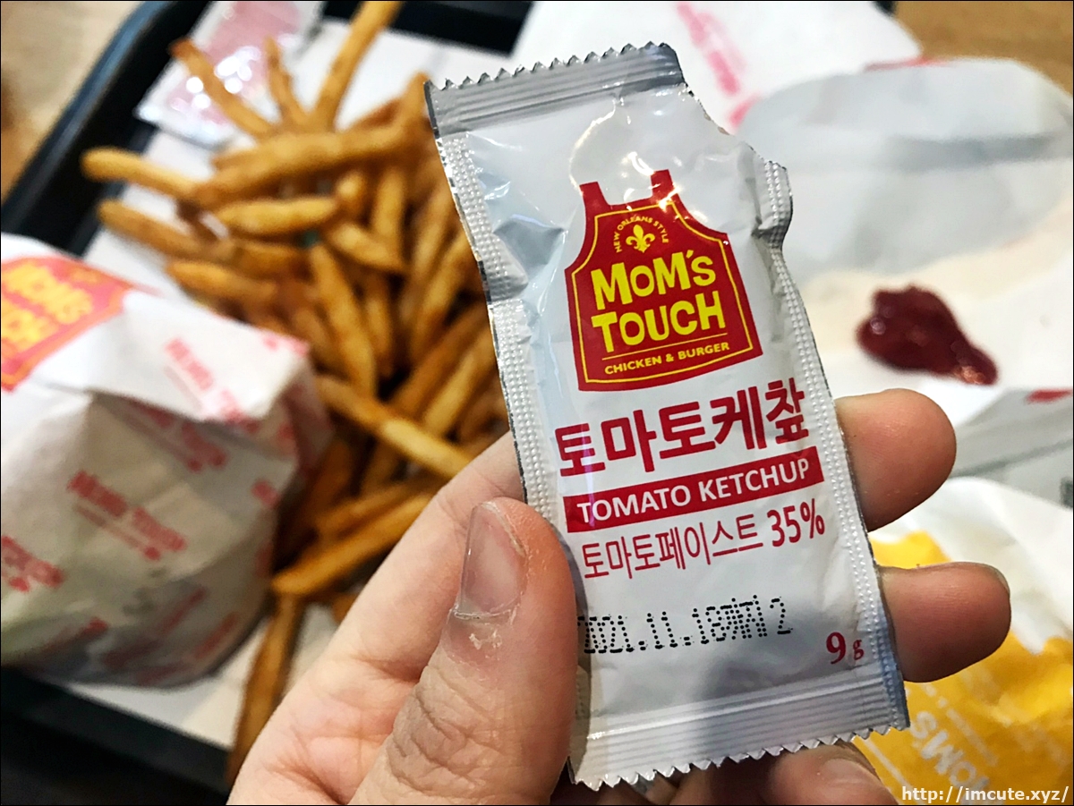 토마토케챂과 감자튀김입니다. 토마토페이스트가 35%함유된 맘스터치 케찹!