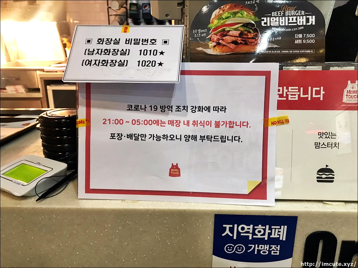 아참, 맘스터치 매장에서 취식하실 경우 코로나19 방역 조치 강화에 따라 21시부터 5시까지는 매장내에서 취식이 불가능 하다고 합니다. 그러니 포장/배달만 가능하니까 그점 양해해 주시면 되겠습니다!