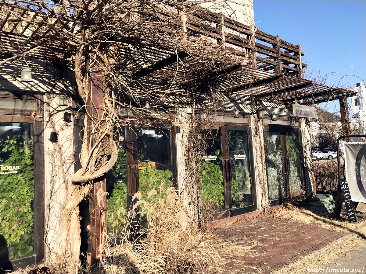 뭔가 해리포터의 '다이애건 앨리'에서 나올법한 그런 느낌의 가게였어요. 이국적인 느낌이 물씬 드는 츄로바! 파주 카페들은 도심속이랑은 다른 교외분위기, 넓은공간이 많은데요 츄로바는 한적한 운치를 느끼며 커피한잔 마시기에 더할 나위 없이 어울리는 그런 느낌의 까페였네요.