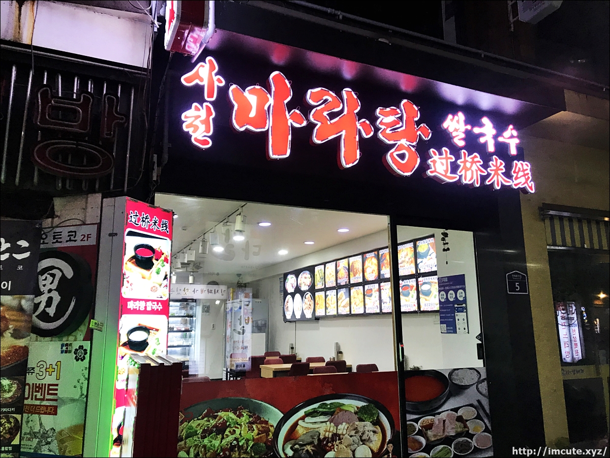 신촌에서 먹을 데 없으면 전 항상 여기서 저녁 혼자 하는 편이에요. 다른 중국인 학생들도 와서 먹더라고요! 뭔가 바깥에서 봐도 맛이 궁금하지 않나요? 저는 그래서 들어가 보았는데 말이죠. 밤에도 네온사진으로 정직한 글씨체가 빛을 발하니, 그저 발걸음이 홀린 듯 이쪽으로 향합니다 그려!