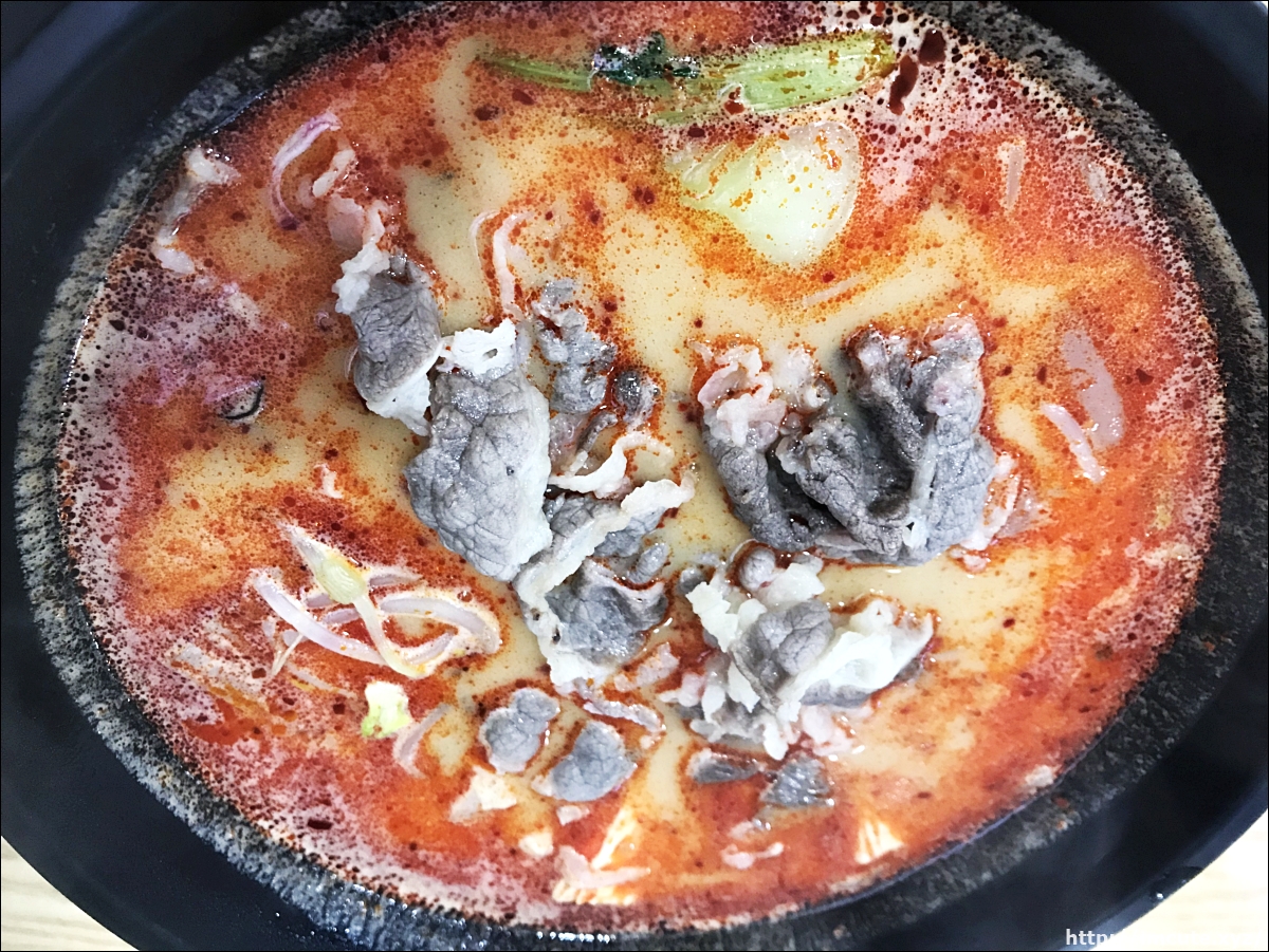 제가 마라탕에 밥이랑 먹기 때문에 이렇게 시켰고요 여기는 소고기가 1000원 단위로도 추가가 가능하더라고요. 그래서 소고기 국물을 멋지게 즐길 수가 있었어요. 다른 재료들도 많이 넣었는데요 이 날은 고수가 다 떨어져서 아쉬운 대로 다른 야채들이랑 넣어서 끓였어요. 이 곳은 다른곳보다 기름이 적다는 것이 특징입니다.