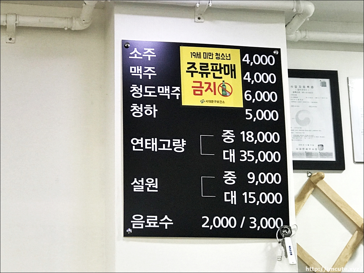 술도 파는데요 소주, 맥주, 청도맥주, 청하, 연태고량주, 설원이 있어서 취향별로 시켜 먹으면 좋습니다.