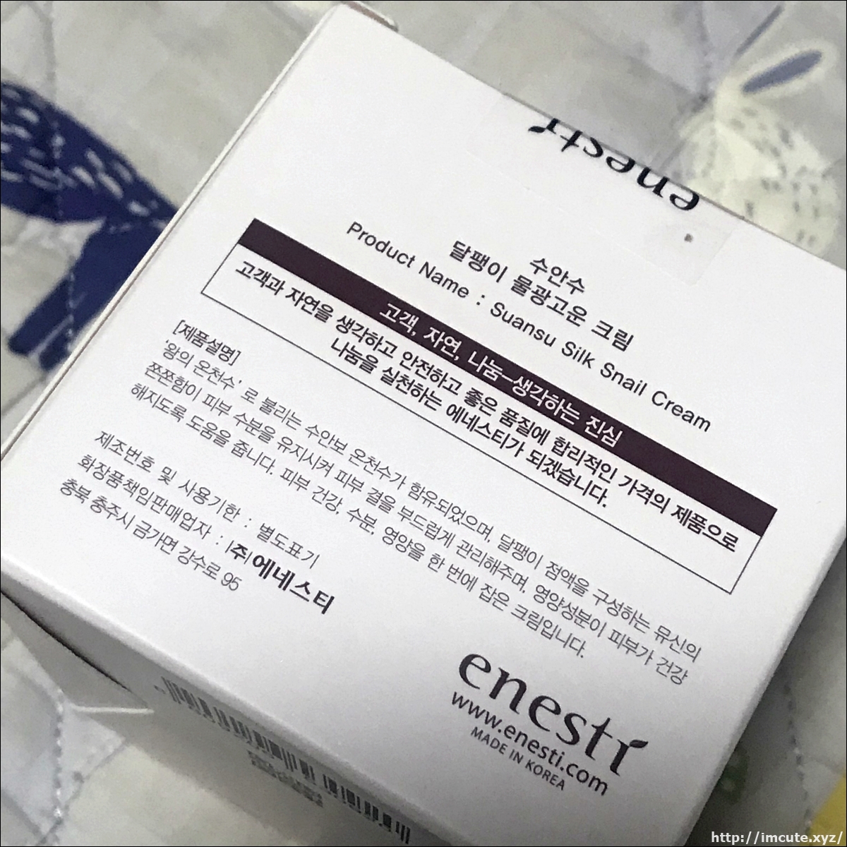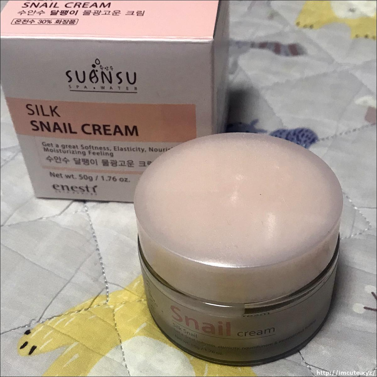 용량은 50g이고요 enesti(에네스티)라는 회사에서 나온 달팽이 크림입니다. SILK SNAIL CREAM이라고 써있는데요 정말 실크처럼 보들보들 잘 발릴거 같은 느낌이 들죠.
