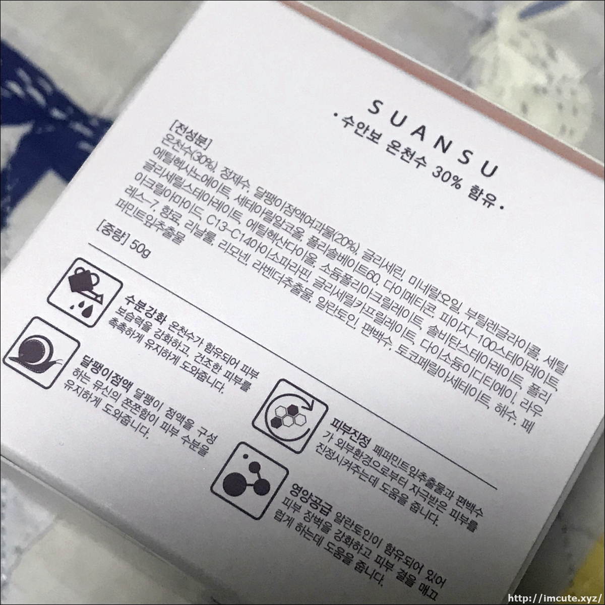 비교적 저렴한 가격이지만 피부건강을 생각했고 또 온천수 30%가 포함된 화장품이라고 써있어요.