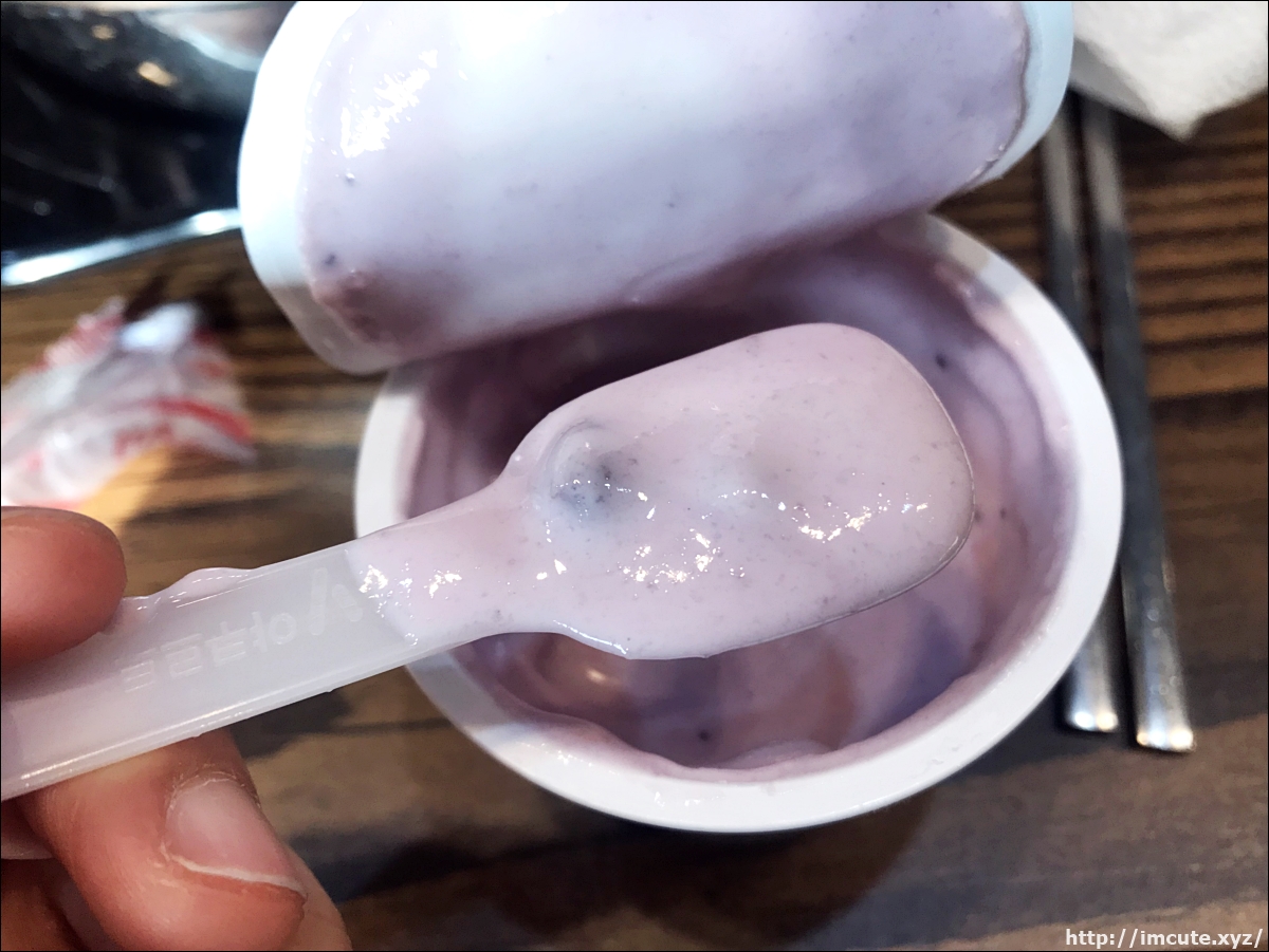 신장개업이라서 서비스로 블루베리 요거트를 받았어요! :D 가까우니 앞으로 자주 들려줘야겠어요. 이모님들도 정말 친절하시더라고요. 또 오고 싶은 마음이 드는 정겨운 밥집이었습니다. 뜨끈한 국밥이 땡길 때 자주 방문해줄 홍대 밥집 하나 발견했어요. 홍대입구역에 오시면 홍대앞 맛집도 좋지만 가끔은 좀더 외곽진 곳에 있는 이런 곳도 와보세요.