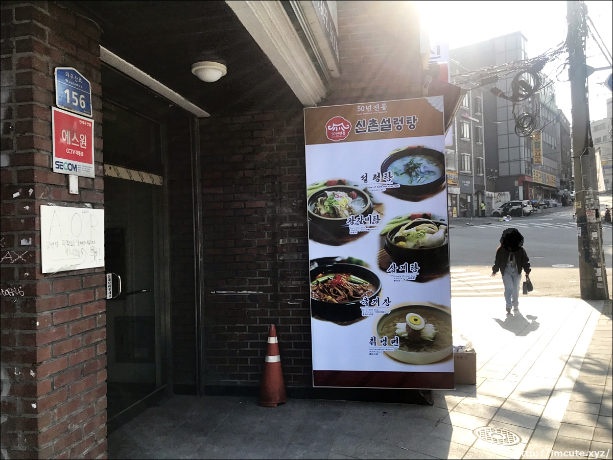 신촌설렁탕이 이름이지만 신촌에 있는게 아니라 이곳은 홍대 설렁탕 전문점이에요. 홍대입구역에서 홍대정문쪽으로 오셔서 땡땡거리(경의선 철길)방면으로 내려와 주세요. 그러면 딱 위치하고 있는데요, 50년 전통이라는 문구가 딱 보였어요. 50년이면 제 나이보다도 훨씬 웃도는 해인데, 그만큼 역사가 있는 유서깊은 가게라는 생각이 들었어요. 갈비탕 뿐만 아니라 육개장이라든가, 삼계탕도 맛볼 수 있어요. 국밥류를 좋아하시는 분들은 좋아할 만한 메뉴가 많은 그런 곳이랍니다.