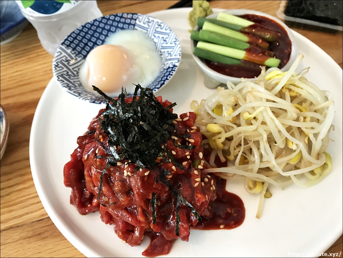 육회도 찾아볼수 있습니다~ 횟집에 생선만 있으라는 보장 있나요! 콩나물이랑 계란 플레이팅이 가히 매력적입니다. 나중에 집에서도 이런식으로 먹어봐야겠습니다. 게다가 고추장베이스로 추정되는 빨간색 소스가 소고기랑 너무 잘 어울리지 않나요?