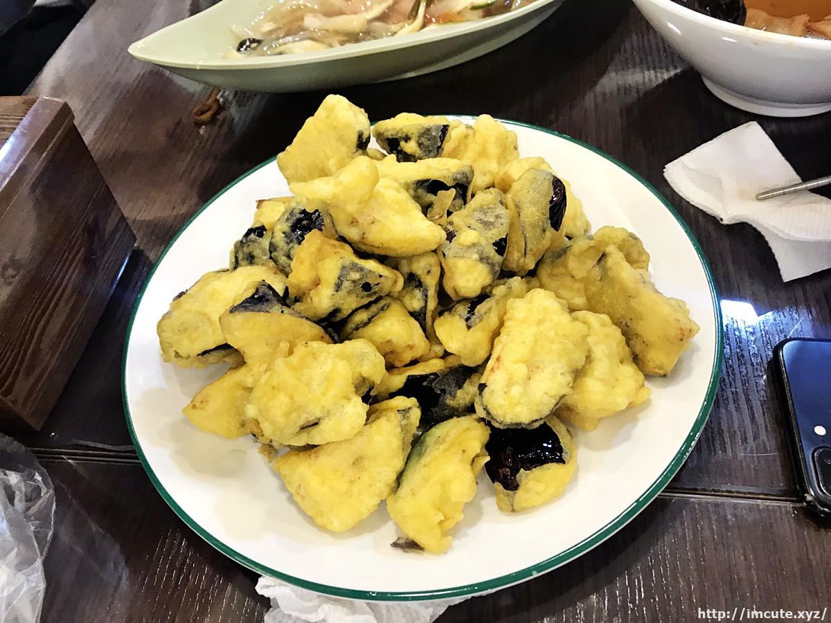 가지튀김은 위에 소스가 안 나오고 그냥 간장같은 거에 찍어먹는거랍니다. 정말 맛깔나 보이죠? 우리나라 사람들은 담백하게 그냥 나물로 무쳐서 먹는데 어떻게 대륙은 이런 클라스로 요리를 다 해주는 걸까요.
