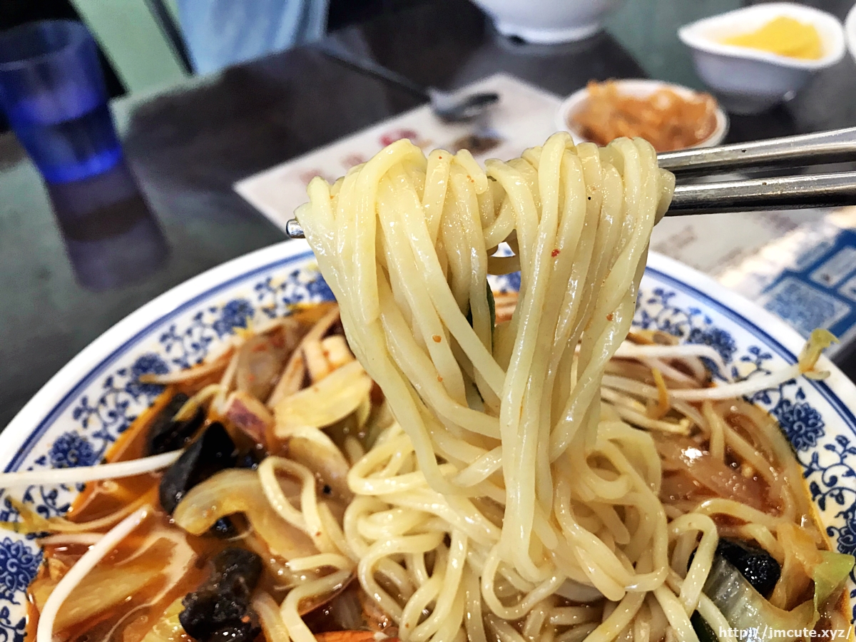 중간중간 들어있는 짬뽕도 풍미에 한 역할을 하며, 불맛이 특징입니다. 정말 바로 나온 짬뽕 이거 꼭 드셔봐야 합니다. 숙주를 밑에 옮겨주고 국물에 우려서 드시면 더욱더 맛과 향이 강해집니다. 국물 하나 남길 거 없이 정말 맛이 좋습니다. 살짝 두꺼운 듯한 중국 짬뽕 면발 너무 맛이 좋습니다.