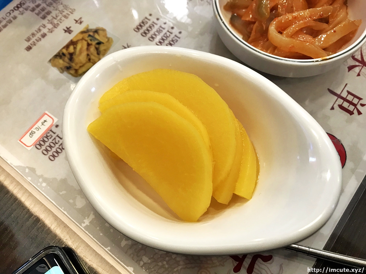 밑반찬으로 많이 나오며 죽순으로 잘못 알고 있는 사람도 있습니다. 단무지는 많이주셨어요.
