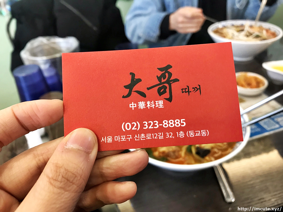 연태고량주 한 잔 하고 싶을 때 오면 좋은 신촌 중국집 따꺼, 명함 알려드립니다. 주인 아주머니랑 살짝 짧은 중국어로 대화도 했는데 참 친절하시더라고요.