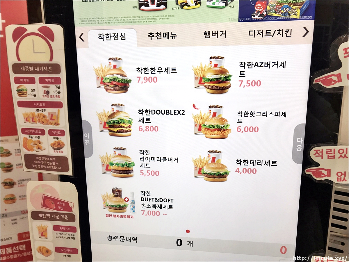 요즘엔 비대면 주문이 대세인지라, 이렇게 키오스크 기계로 클릭을 하여 주문도 가능해요.