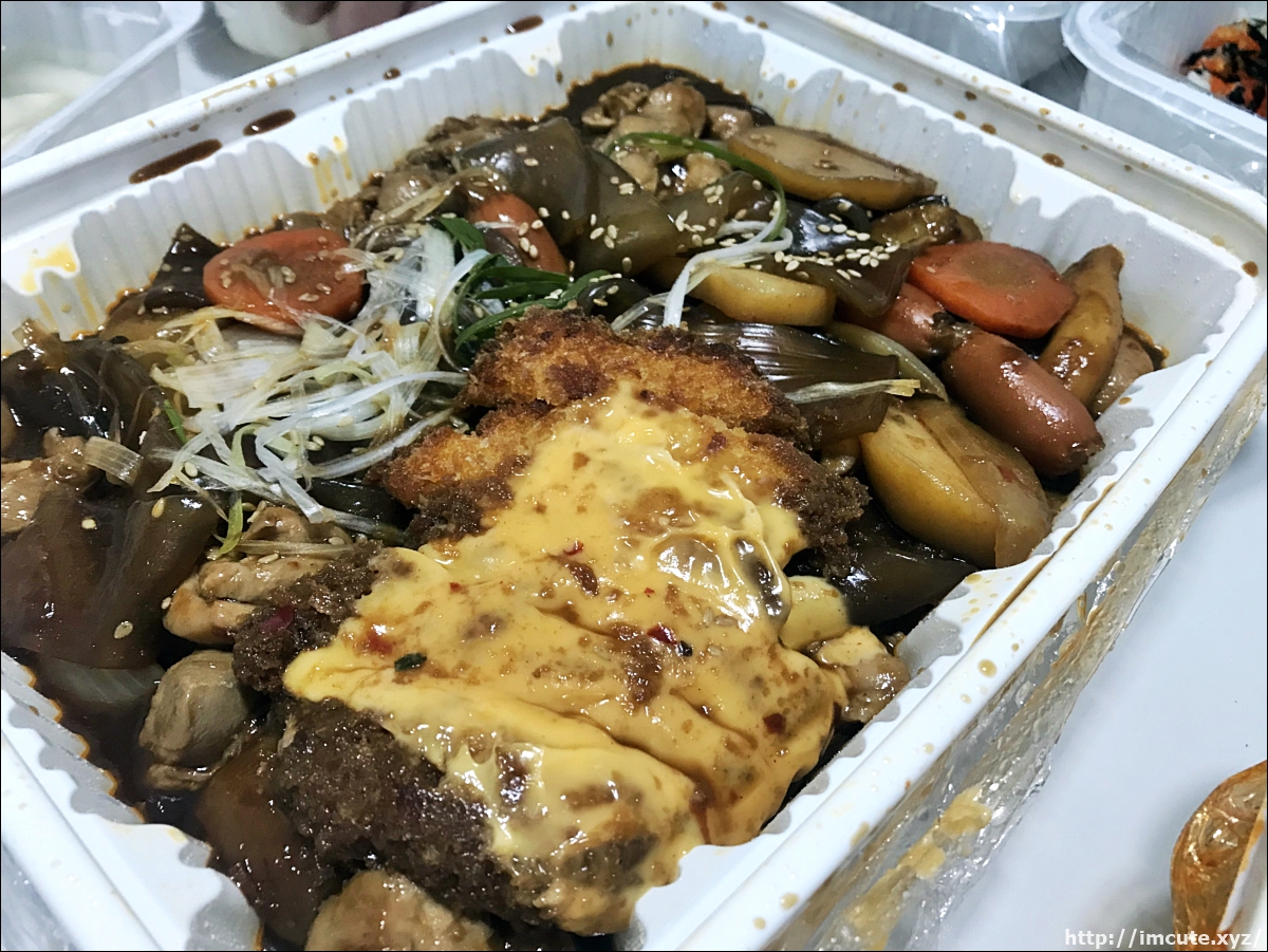 특히 돈까스 위에 치즈 엎어 놓은 것은 찜닭 소스랑 어우러지니 최고였어요.