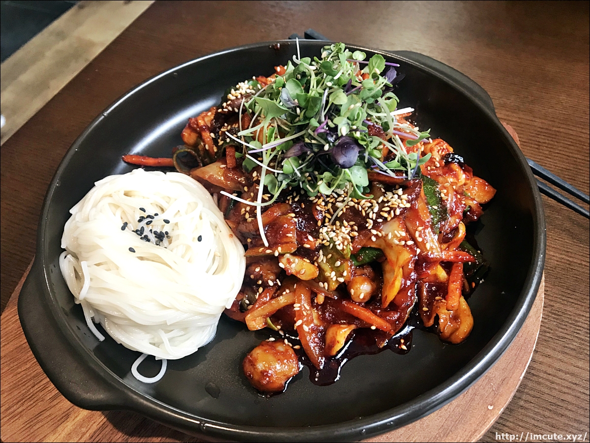 낙지볶음도 함께했어요. 뜨거울 때 먹어야 더 맛있는 낙지볶음입니다. 특이하게 소면이랑 주는데요 원래 저런건 골뱅이에 나오는거 아닌가요?