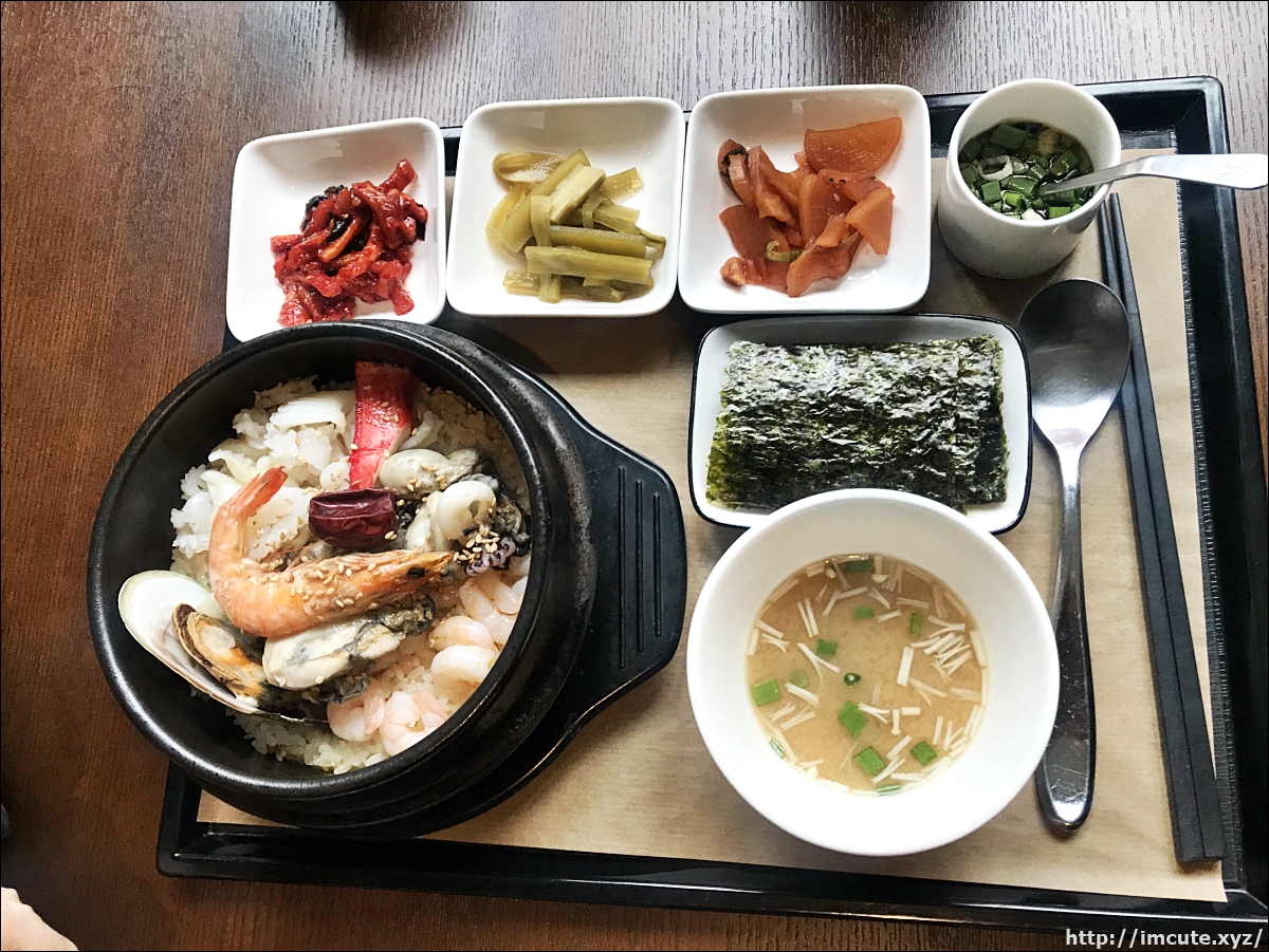 깔끔한 1인메뉴로 뚝배기에 담겨져 나오는 넉넉한 해물솥밥