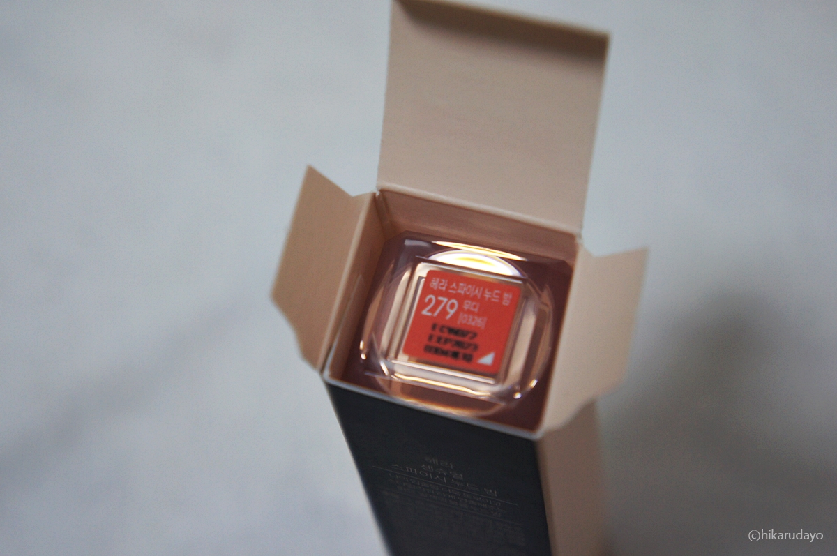 여러가지 컬러가 있었는데요 센슈얼 스파이시 누드밤의 279호 무디(MOODY)컬러는 이렇게 살짝 주홍빛을 띤답니다. 퍼스널 컬러 봄 웜 컬러분들이 사용하시면 아주 좋겠고요. 위에 어떤 색인지 쓰여져 있으니 실수 하지 마시고 구매하시길 바라요. 하지만 저는 인터넷에서 데려왔다는 거!
