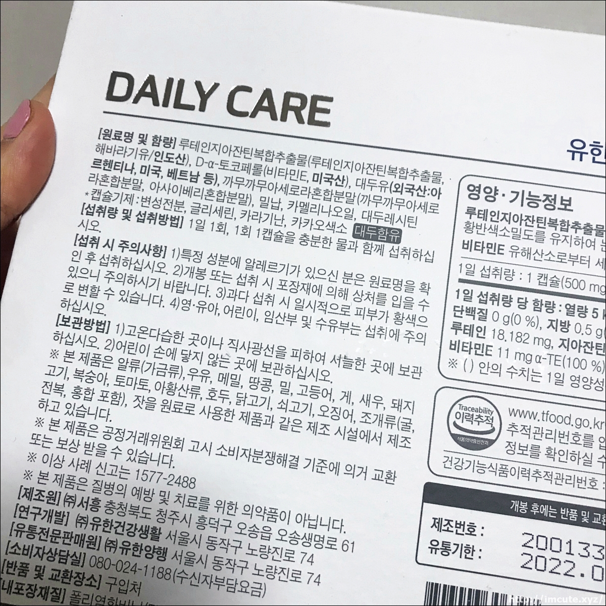 건강기능식품이력 추적관리번호도 있고, 입력하면 정보까지 확인이 가능하다 해서 신기했습니다.