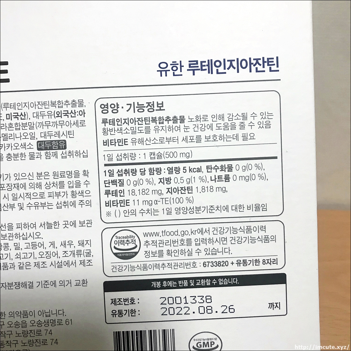 루테인지아잔틴 복합추출물이 대체 뭔지는 모르겠지만 확실히 '이거 루테인 제품이다'라고 뽐내주는 듯했어요.
