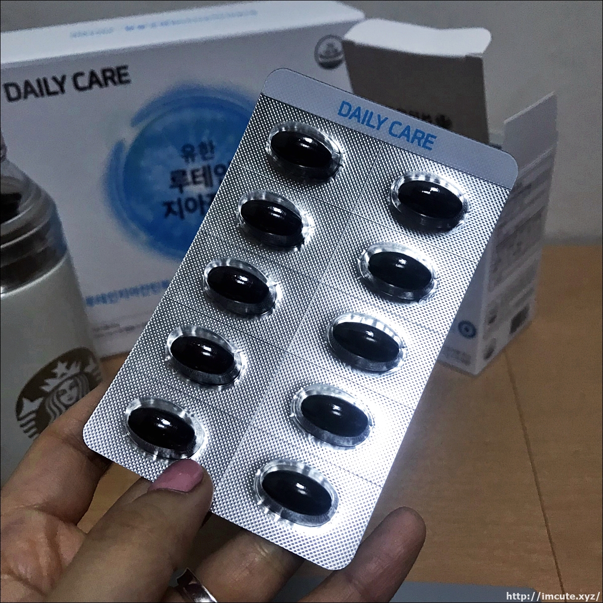 그리고, 검은색 눈동자를 닮은 알이 10개씩 묶음으로 들어 있습니다. 하나씩 떼어서 가지고 다니며 섭취를 할 수 있어, 편리함을 느꼈습니다.