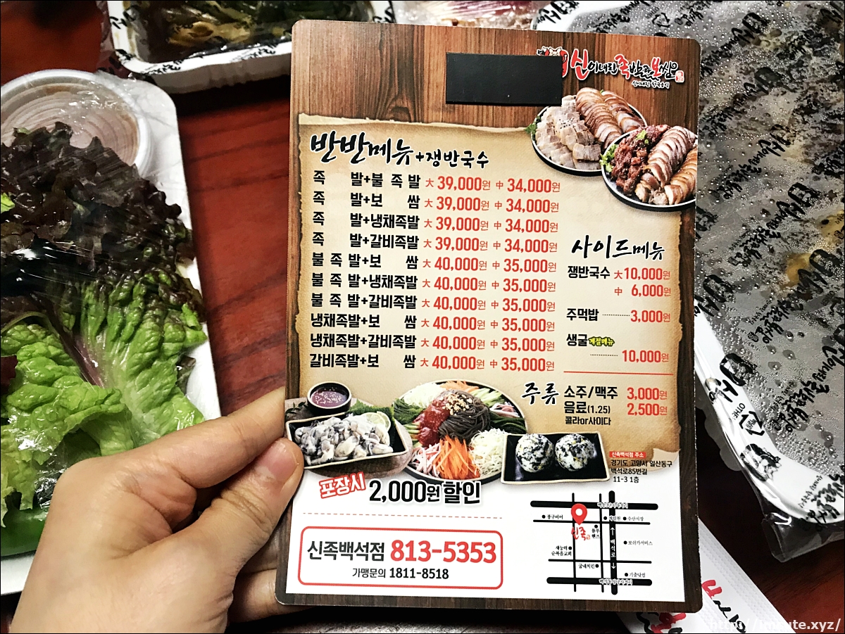 신이내린 족발과 보쌈 일산 백석점 메뉴판 & 가격 참조하세요!