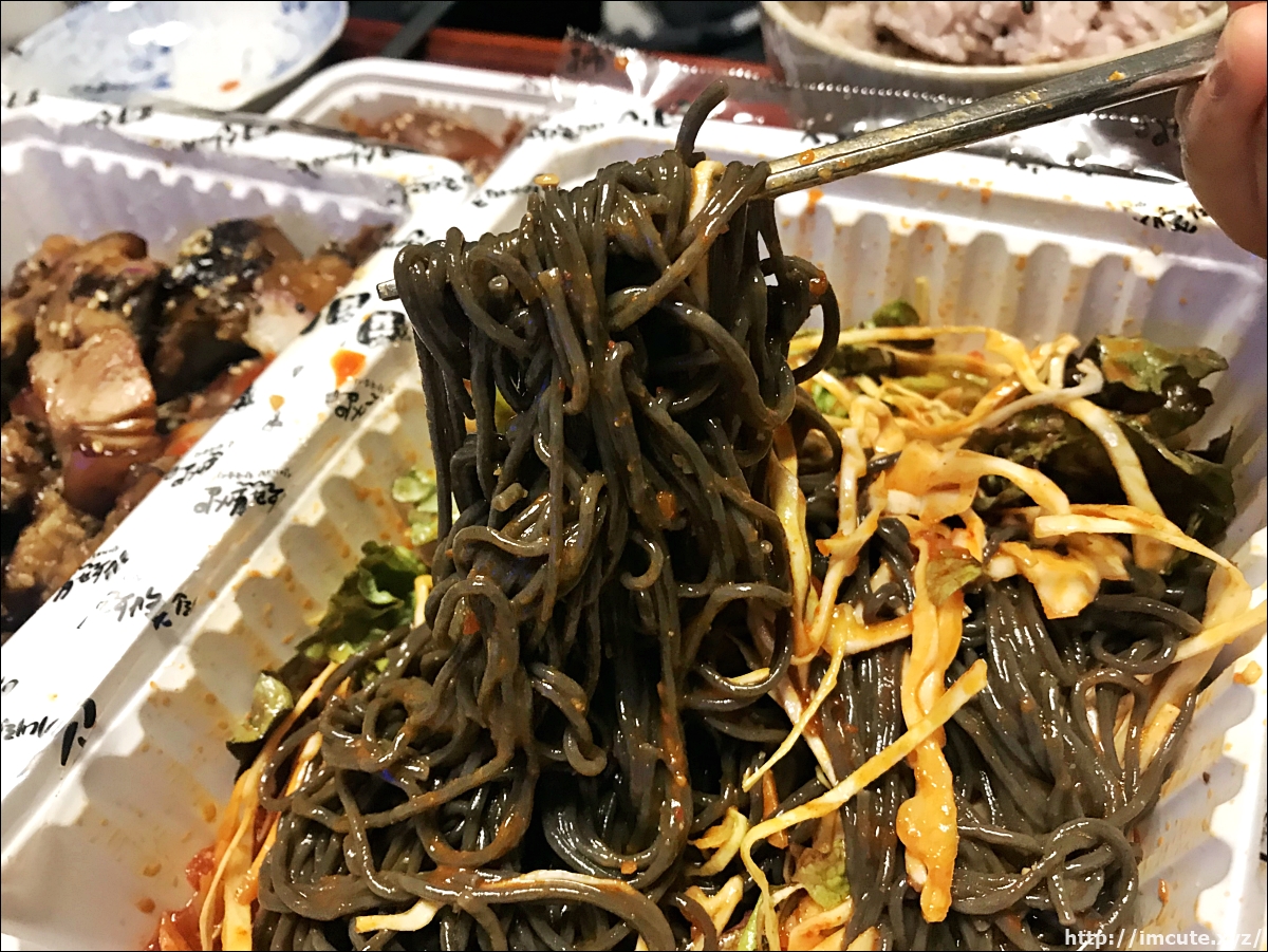 한번 예쁘게 건져올려보았습니다. 와~ 정말 쫀쫀하고 맛깔나더라고요. 소스를 부으니까 면발에서 탄력이 살아나면서 먹기 좋게끔 변신을 한답니다. 이래서 사람들이 다 여기서 시켜먹나봐요. 일산 족발전문점을 여러군데 알고 있지만 간만에 비린내 안나고 깔끔한 맛을 맛보네요. 아빠가 족발 매니아인데 맛이 괜찮다며 칭찬을 해주셨더랬습니다.