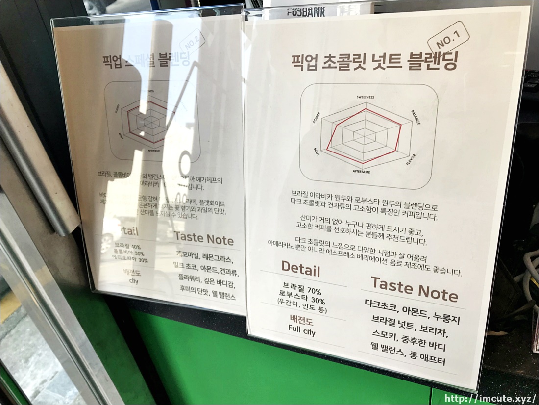 픽업 스페셜 블렌딩/ 픽업 초콜릿 블렌딩에 대한 설명이 쓰여져 있었어요.