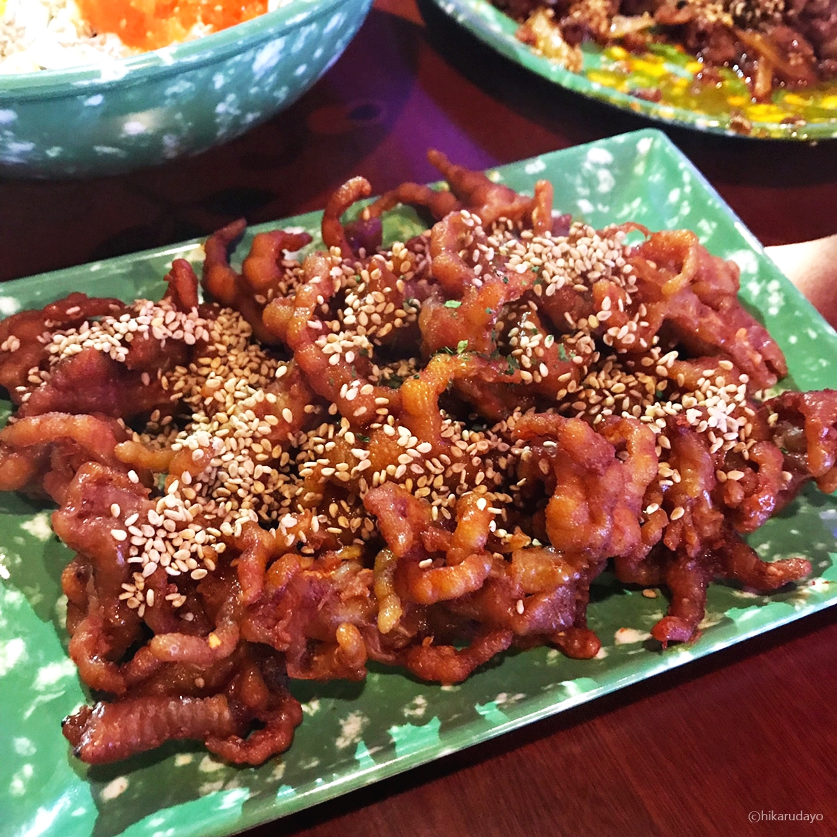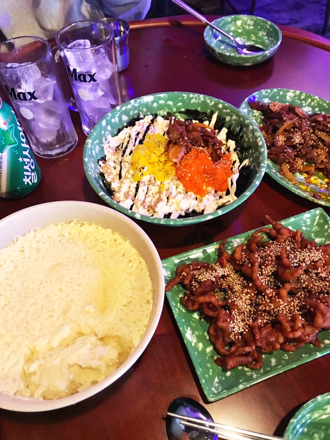 오돌뼈 주먹밥을 비빔밥 식으로 해서 먹었는데요, 닭발이 함께하니 완죤 !! 이거 성역에 다다르는 그런맛입니다. 배가 고파서 그런지 더 맛났고요, 심오한 이야기를 나누기에 좋은 포차죠. 분위기가 조용했거든요. 하지만 전혀 촌스럽지 않고 모던해서 그런지 분위기 맛집이기도 했어요. 닭발먹으며 쏘주 한잔에 찌인한 이야기를 나눠보고 싶다 하면 여기로 오셔요.