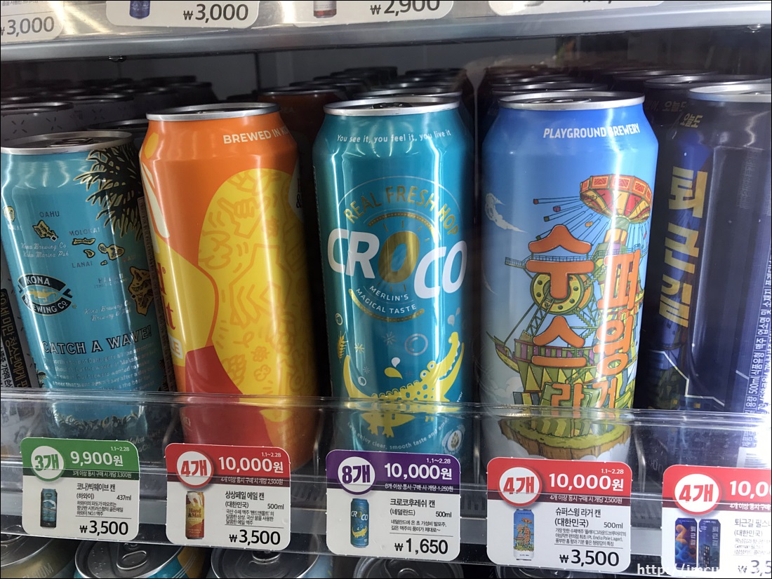 특히 8개에 10000원인 것도 있어요. "크로코후레쉬 캔"은 500ml나 되는데 8개 만원! 그러면 하나에 천원대 가격이라니 너무 저렴하죠.